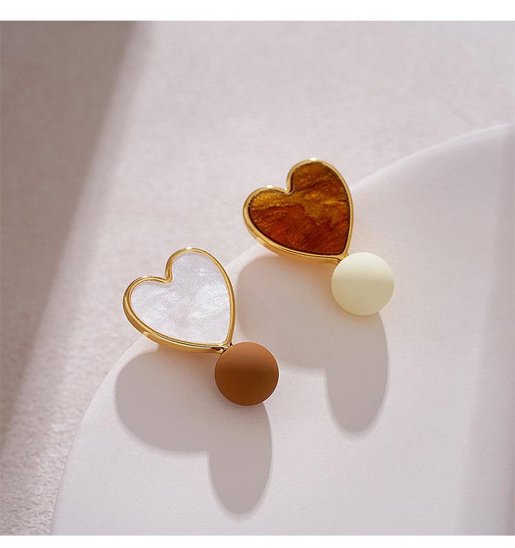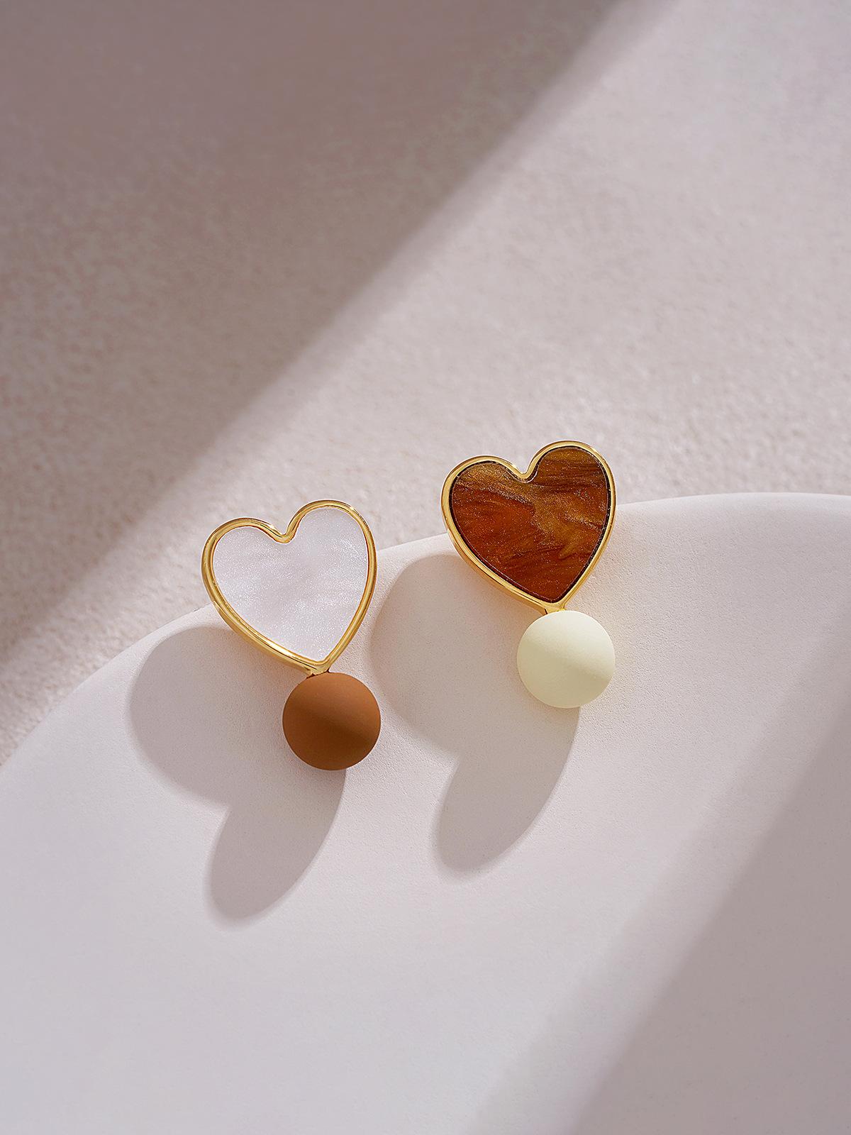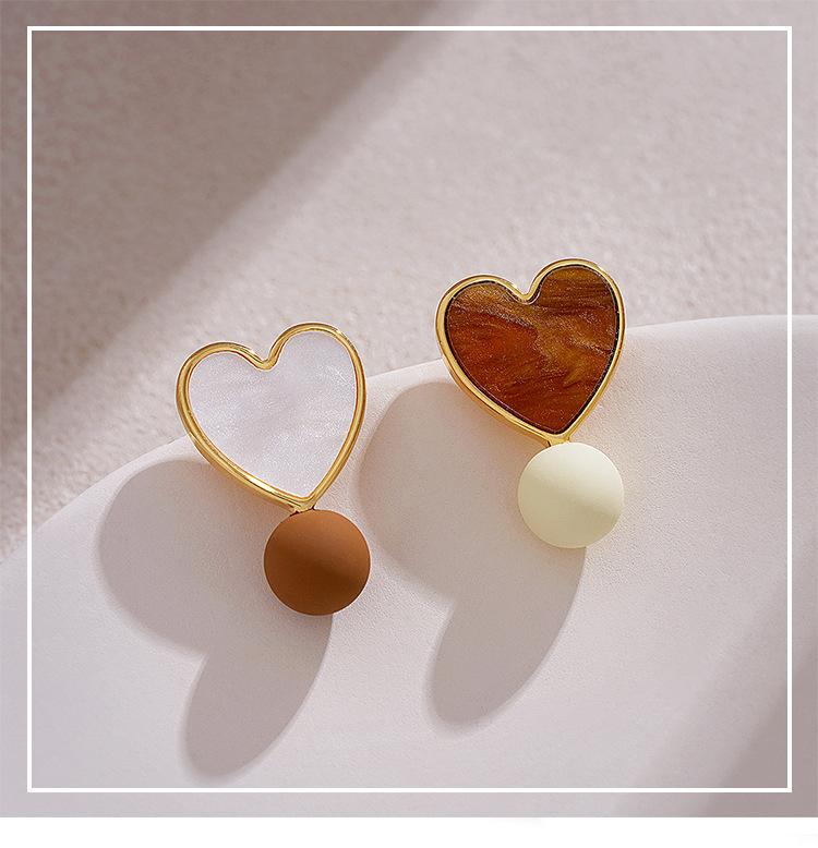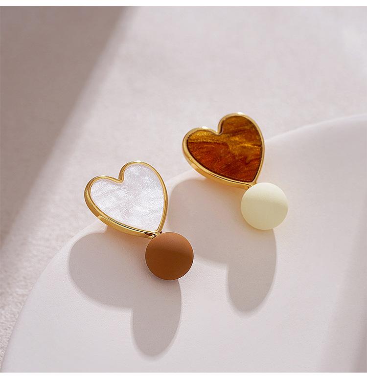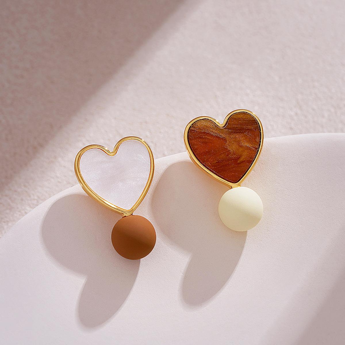 Pendientes Retro Franceses de Diseño Único, Pendientes Asimétricos de Corazón Durazno, Pendientes de Color Café de Alta Gama, Estilo 2024