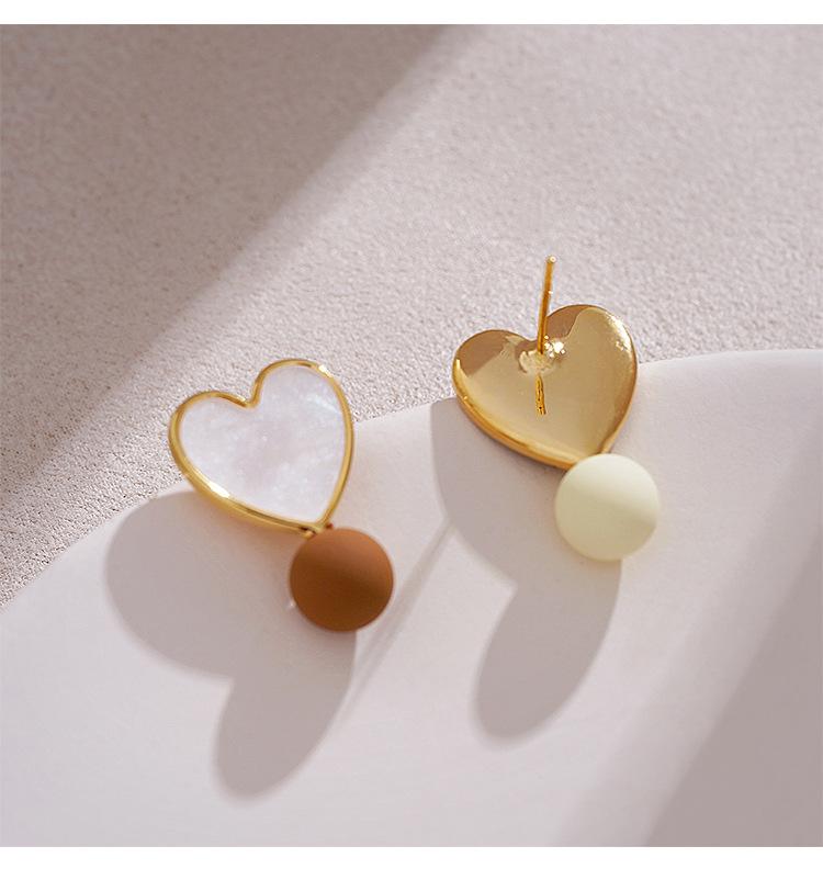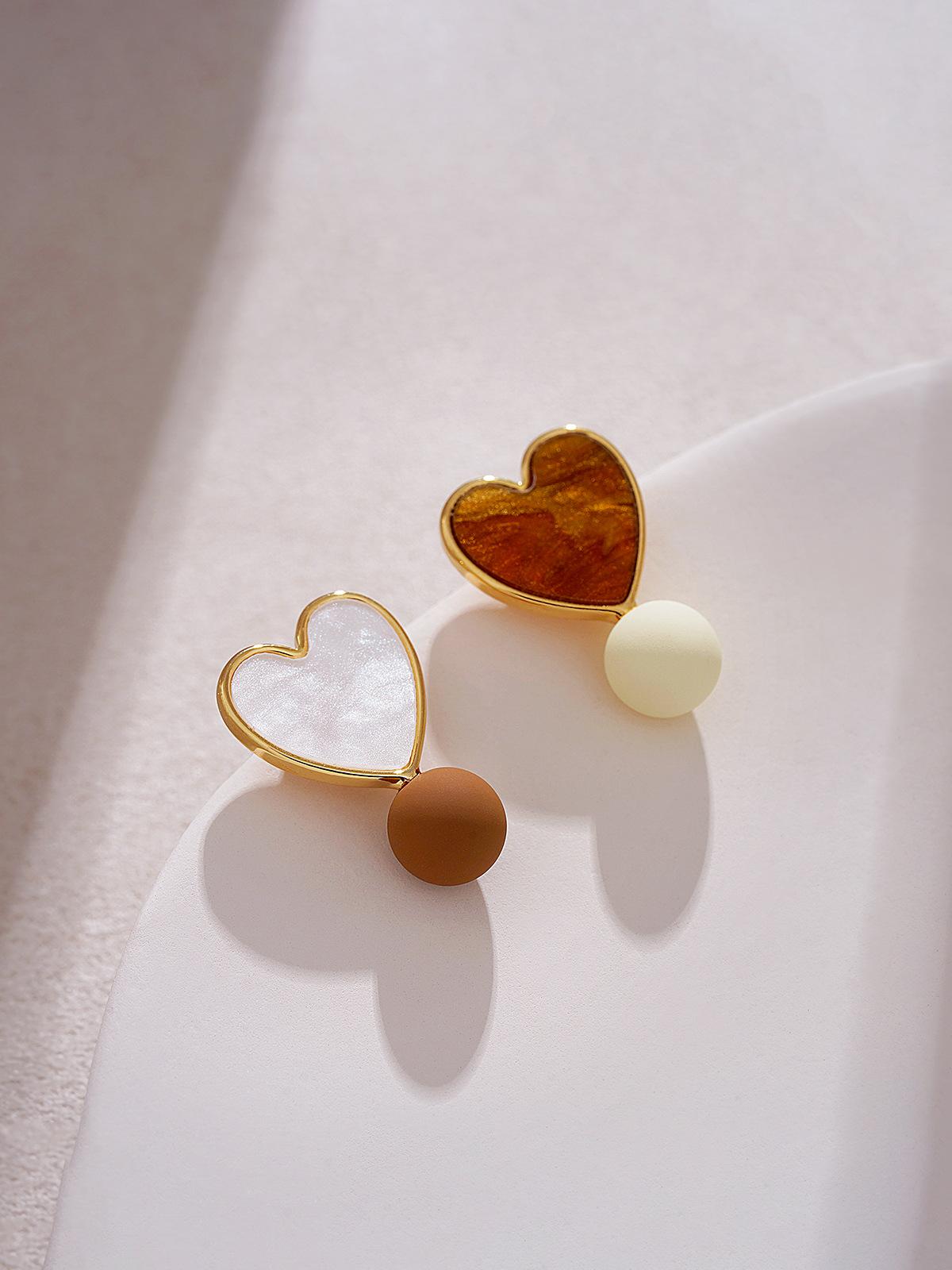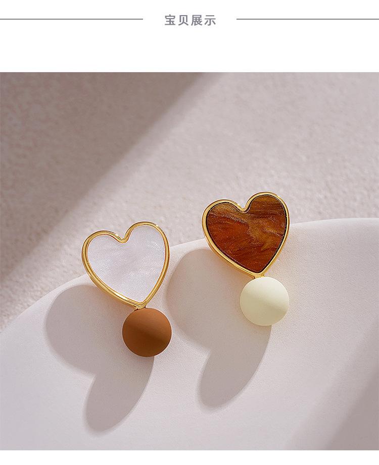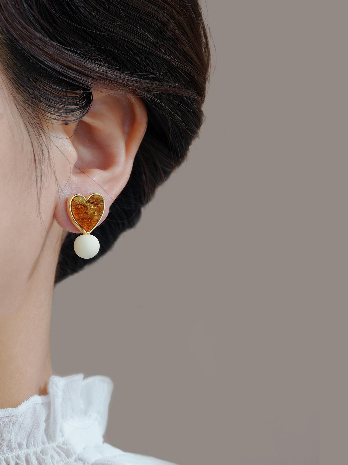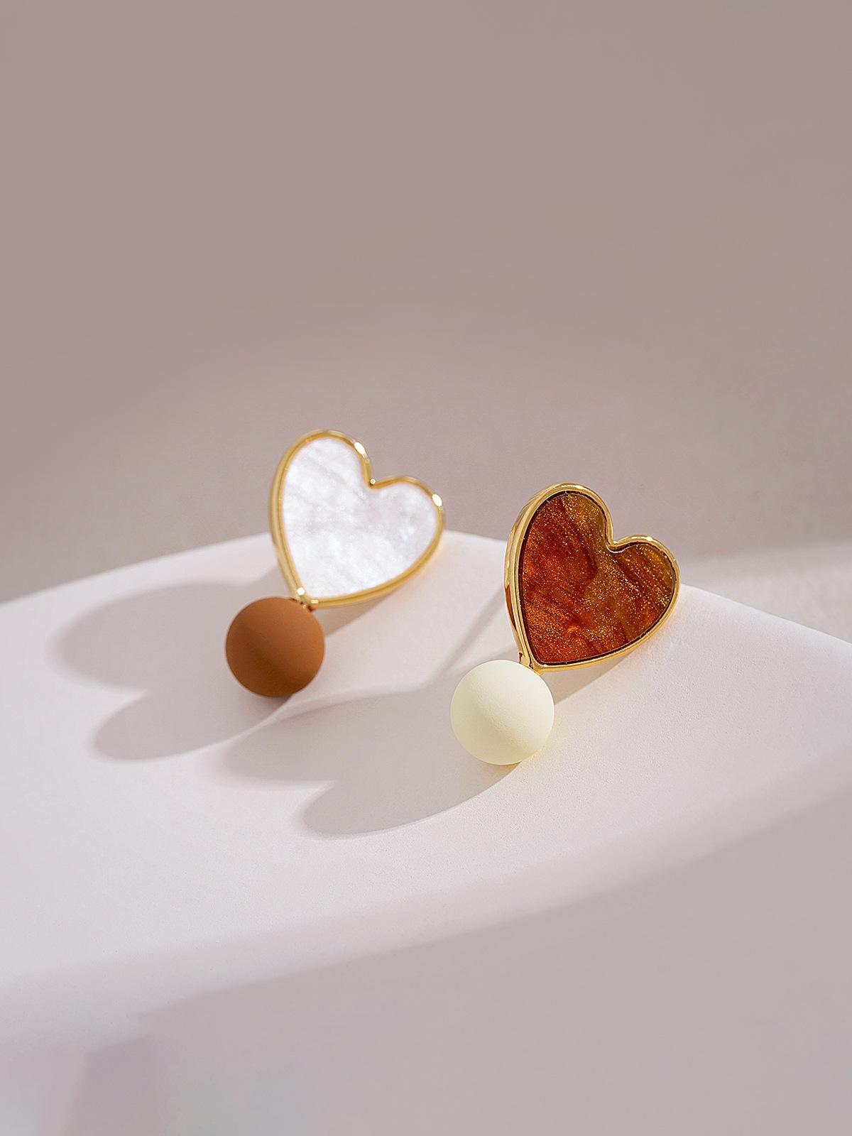 Pendientes Retro Franceses de Diseño Único, Pendientes Asimétricos de Corazón Durazno, Pendientes de Color Café de Alta Gama, Estilo 2024