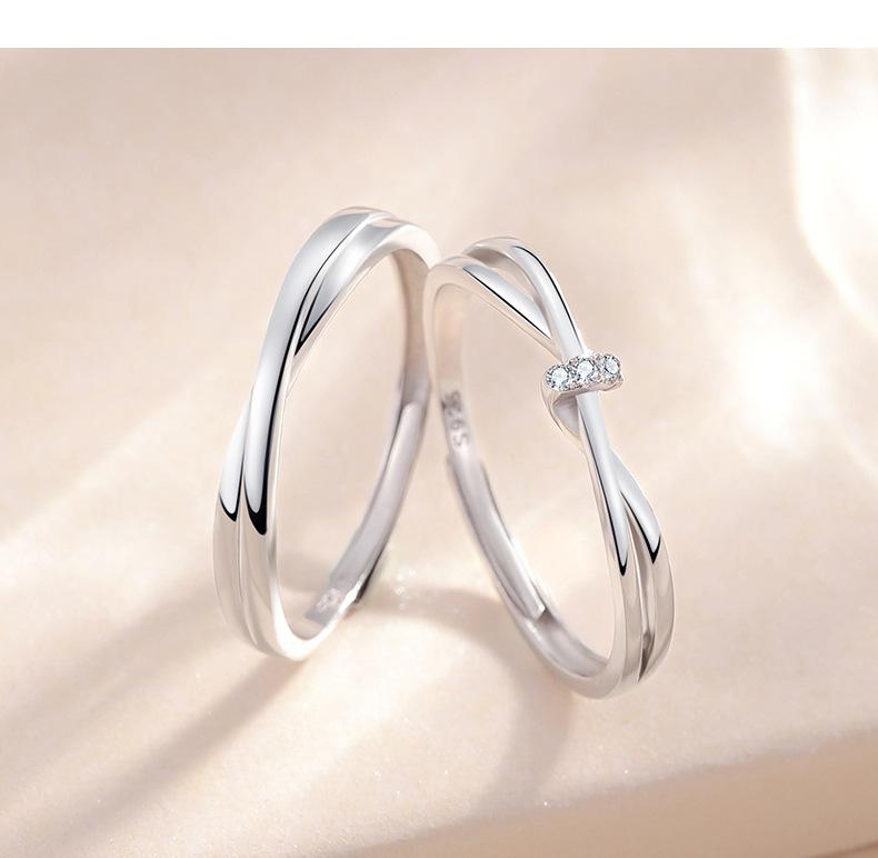 Anillo de pareja Runxin Mobius, un par de anillos abiertos de plata chapada en cobre con cuerda retorcida, simples y versátiles.