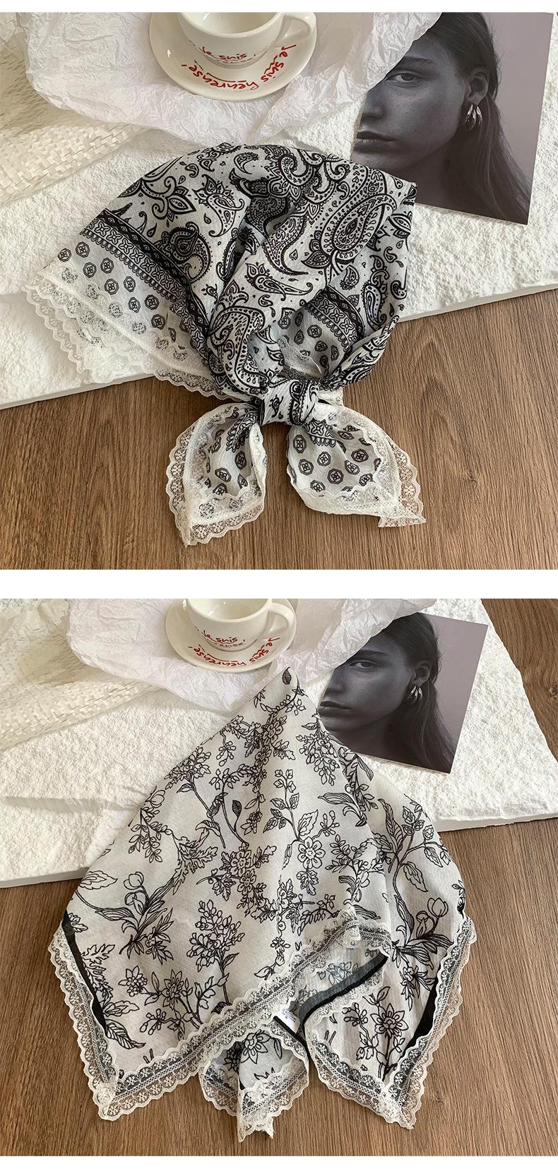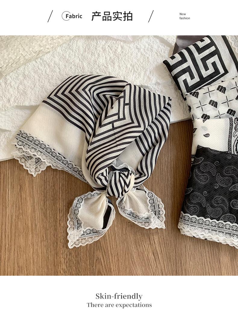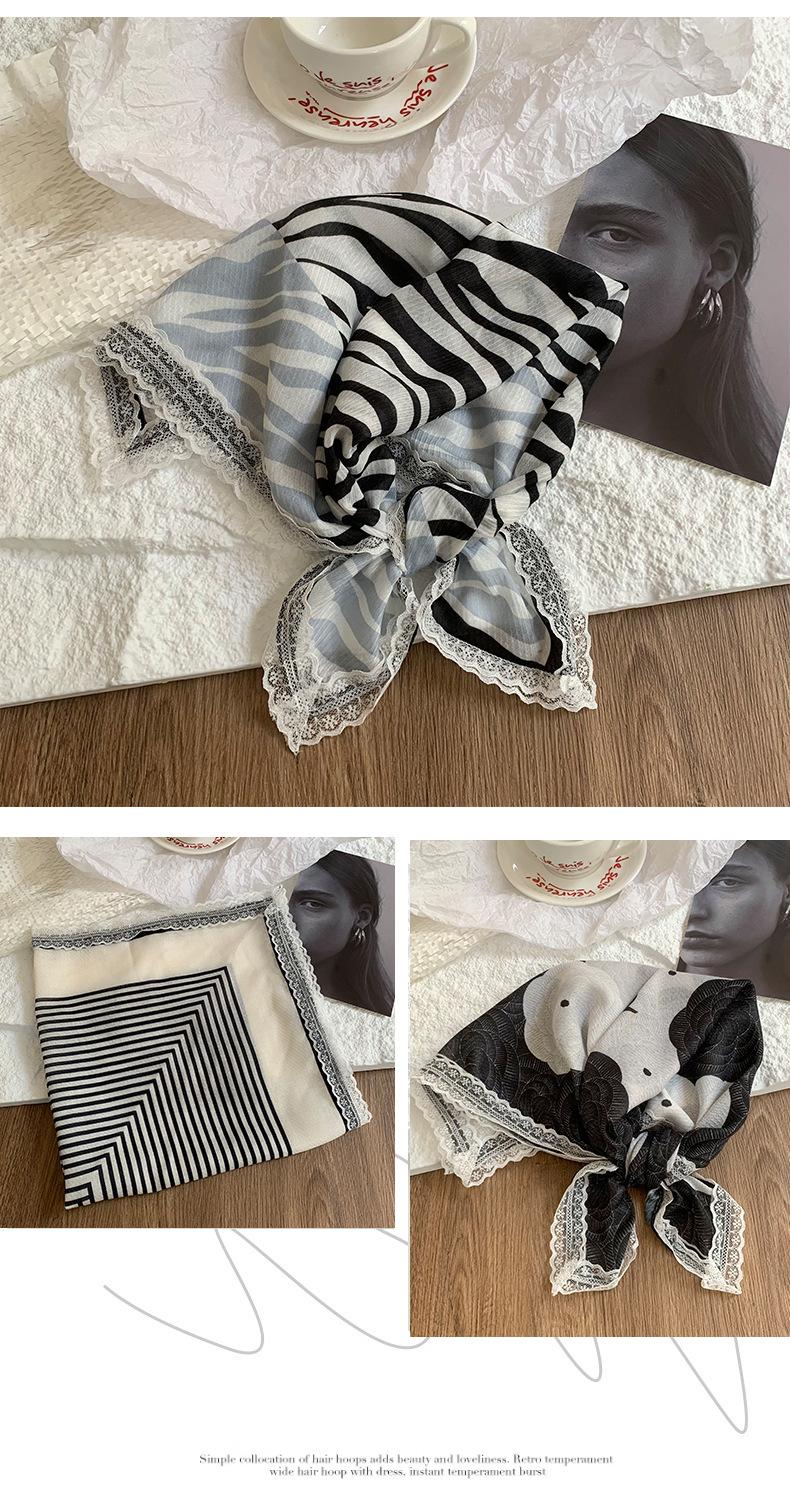 Bufanda Cashew Rayada de Encaje Romántico Francés Cinturón para el Cabello Bufanda Triangular Bufanda Cuadrada Protección Solar de Primavera y Verano Bufanda Pequeña Decorativa para el Pie