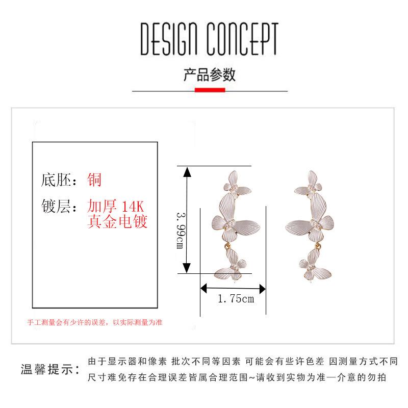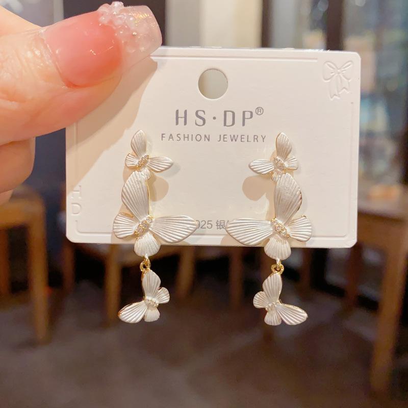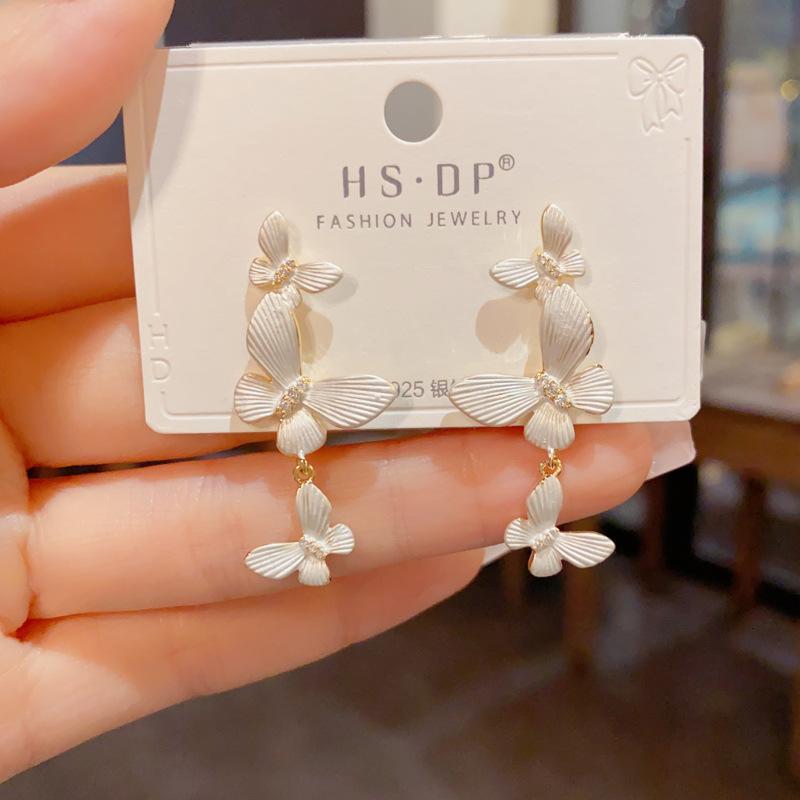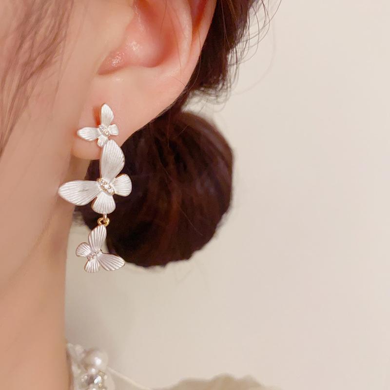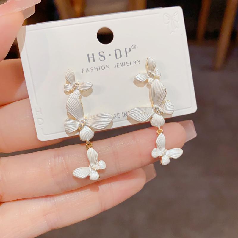 Three-dimensional white butterfly tassel earrings (thick real gold plating)