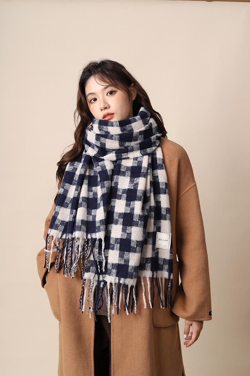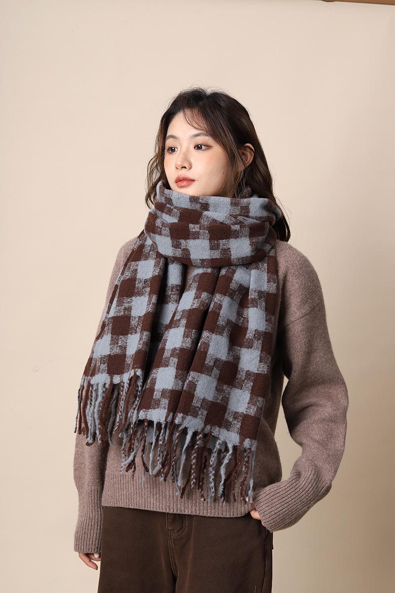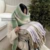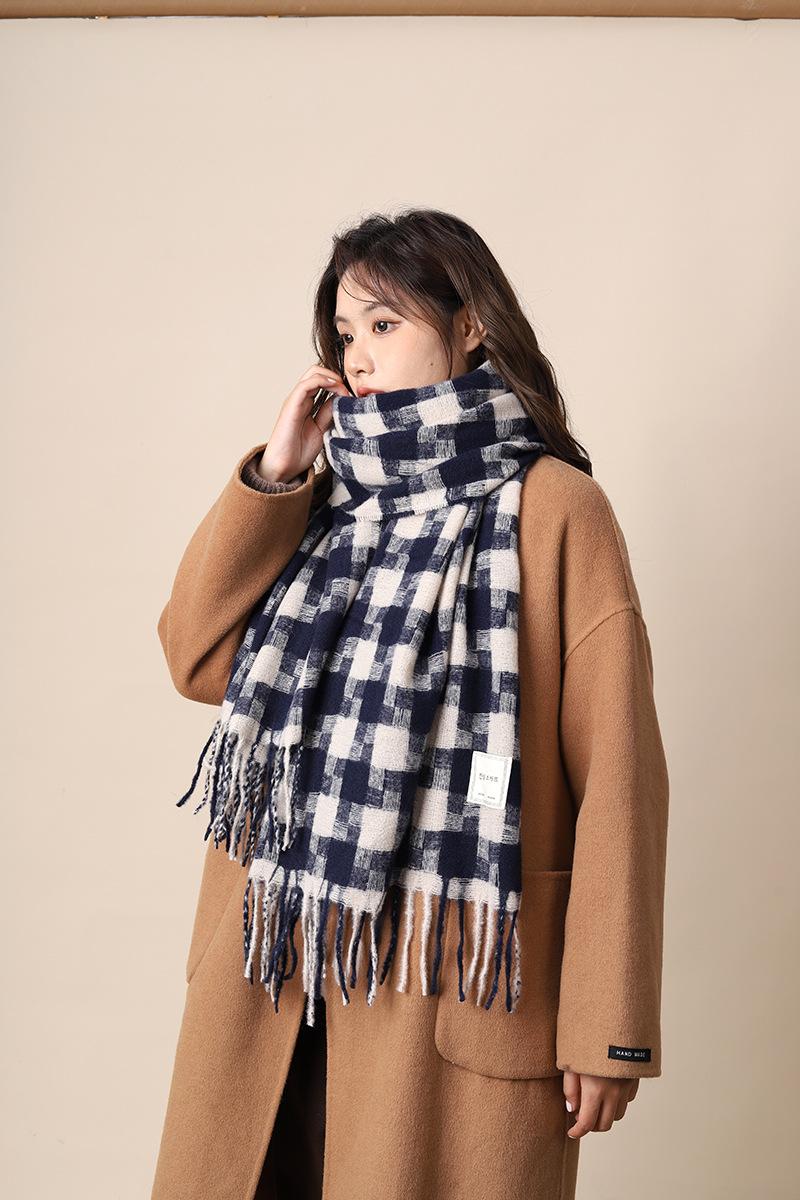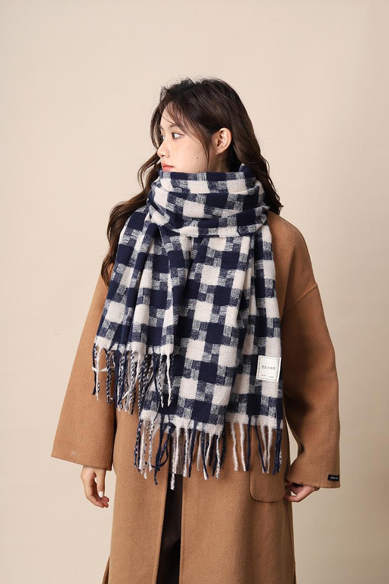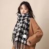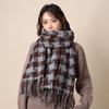Bufanda gruesa a cuadros estilo coreano súper cálida para mujer invierno versátil chal largo doble uso estilo retro estudiante calentador de cuello marea