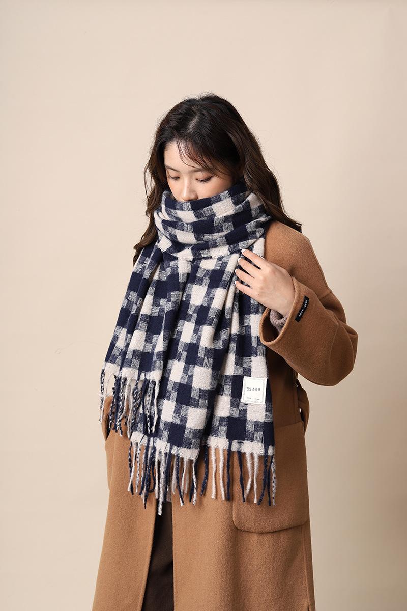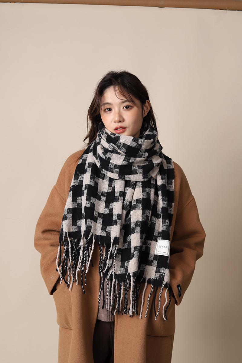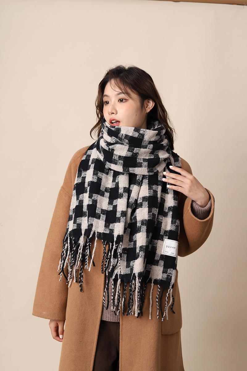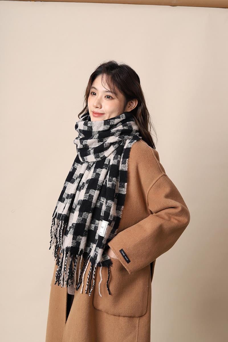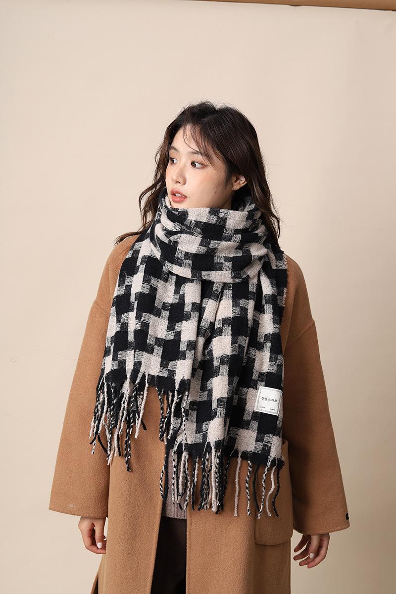 Bufanda gruesa a cuadros estilo coreano súper cálida para mujer invierno versátil chal largo doble uso estilo retro estudiante calentador de cuello marea