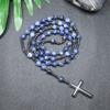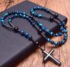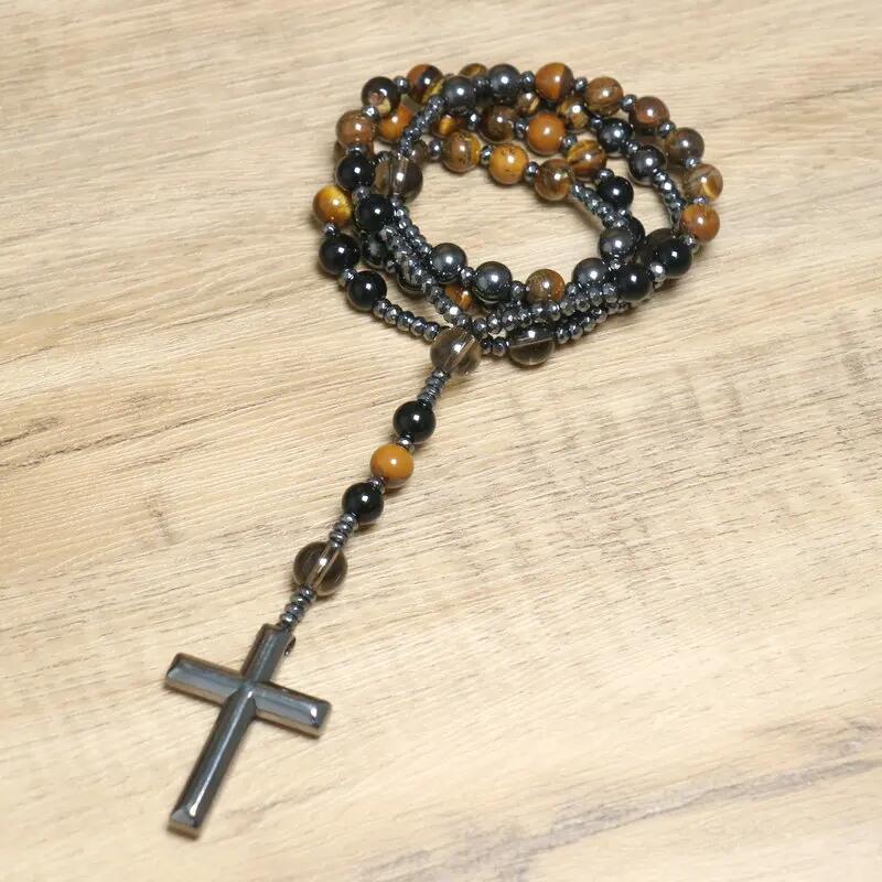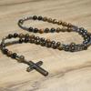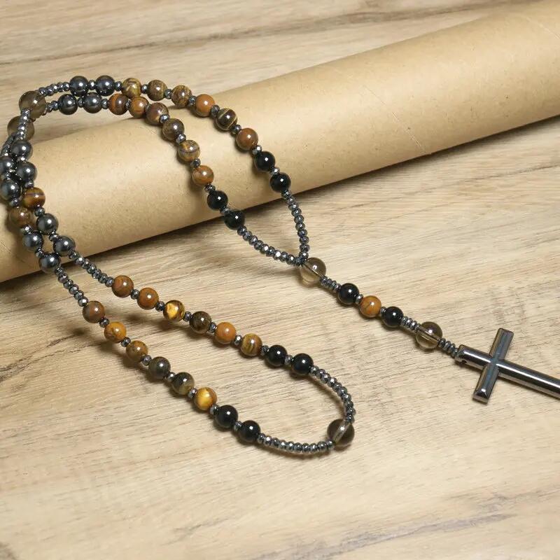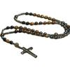 Amazonas Piedra Natural Colgante de Cruz Collar Piedra Ojo de Tigre Cruz Vesícula Biliar de Hierro Rosario para Hombres Collar Venta al por Mayor