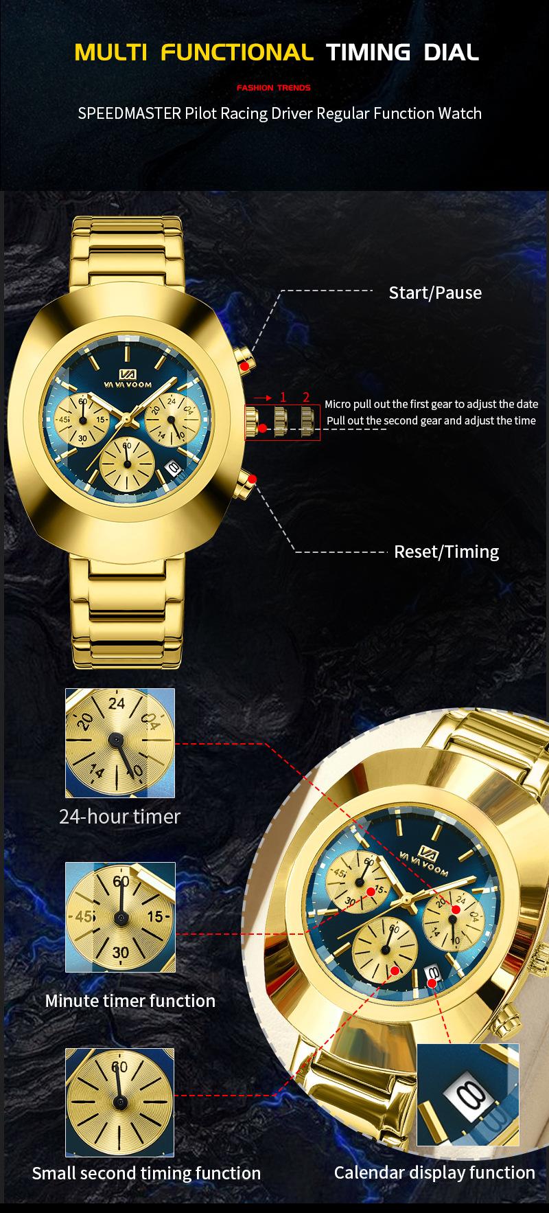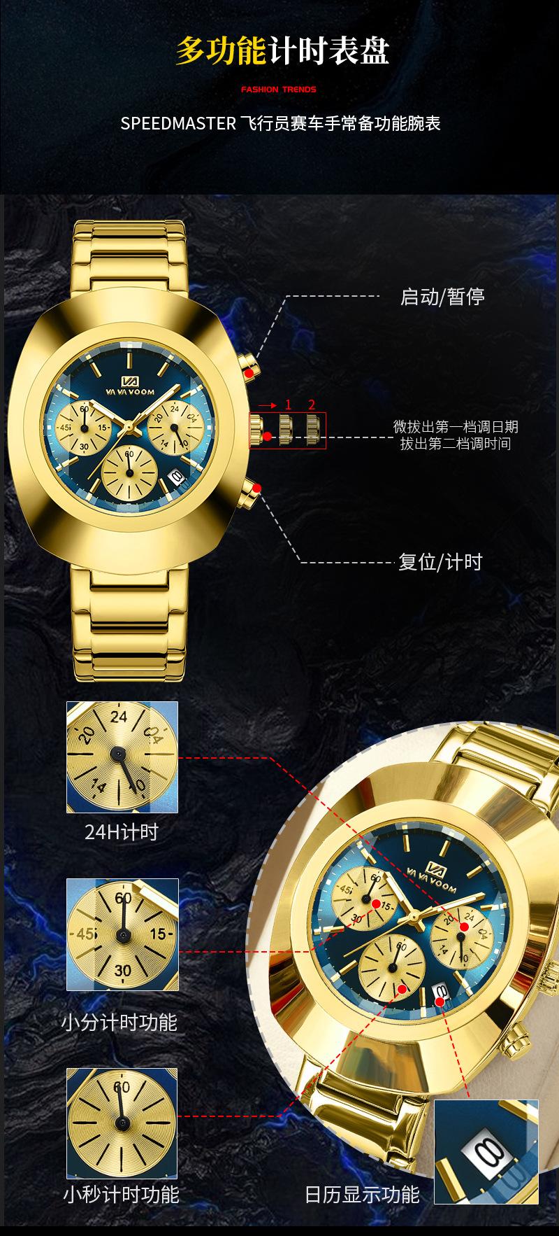 Reloj de pulsera para hombre multifunción de seis agujas con calendario, resistente al agua, luminoso, para comercio exterior transfronterizo, de cuarzo, con temperamento de moda, al por mayor