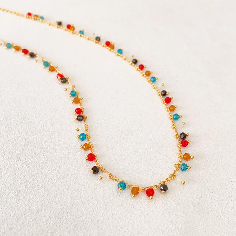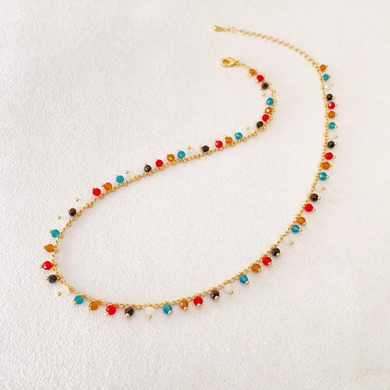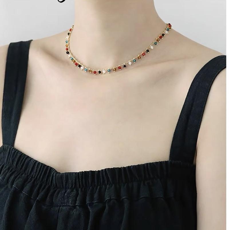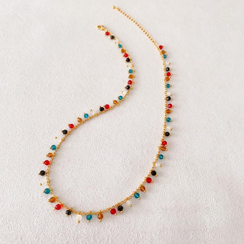 Primavera y Verano Nueva Moda Color Caramelo Cuentas de Vidrio Vintage Collar de Lujo Ligero Corto Nicho Versátil Cadena Collar Cadena Clavícula