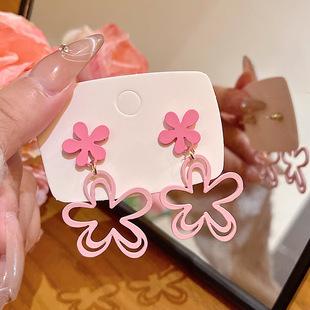 Aretes de Flor Hueca Rosa Mujer Dopamina Lindo Dulce Cool Moda Aretes Colgantes Nicho Sentido de Alta Gama Aretes de Tuerca Joyería