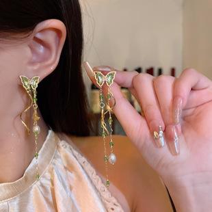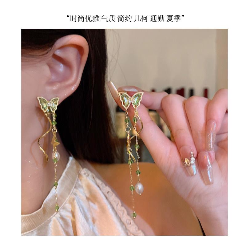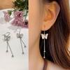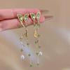 Pendientes de borla de mariposa fresca estilo Mori para mujer, temperamento súper hada, sentido de alta gama, pendientes colgantes de perlas, aretes de botón, aretes de verano