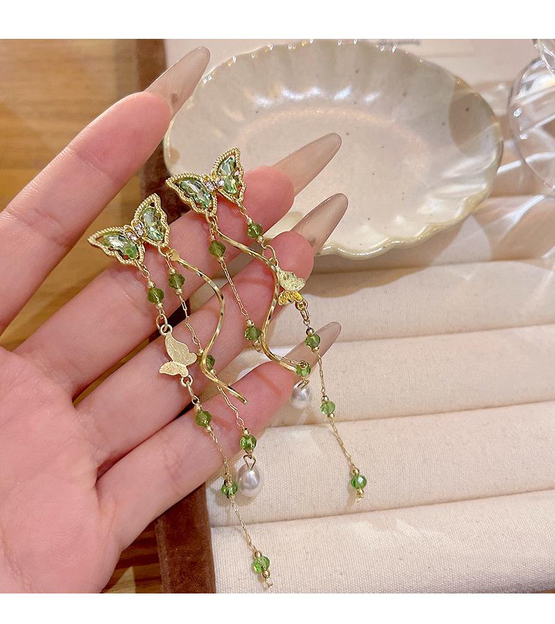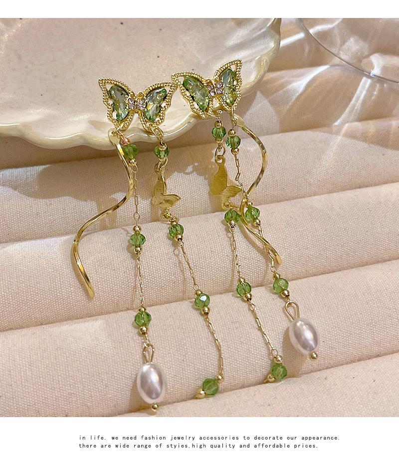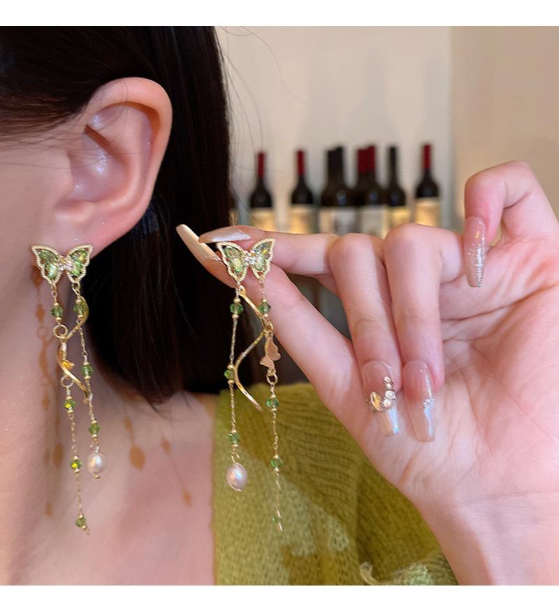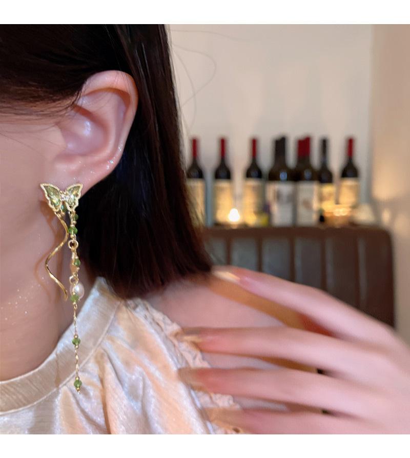 Aretes de Borla de Mariposa Pequeños y Frescos Estilo Bosque para Mujer, Súper Hada Elegante, Aretes de Perlas de Alta Gama, Aretes, Joyería para la Oreja de Verano