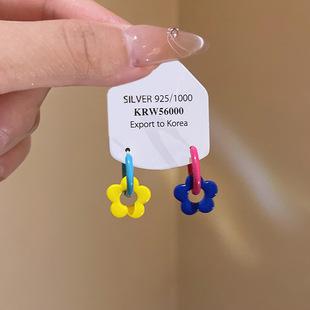 Coloridos Puños de Oreja de Flor de Dopamina Diseño Nicho Aretes Dulces y Lindos de Bloque de Color Temperamento Único Aretes de Alta Gama