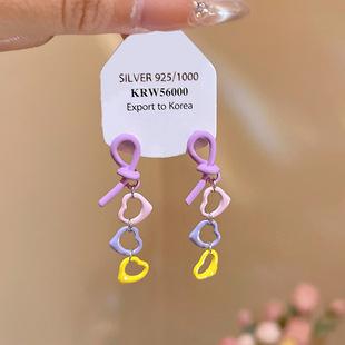 Aretes colgantes de corazón de colores con bloqueo de color dopamina, diseño de nicho, pendientes largos para chica dulce y cool, joyería de personalidad