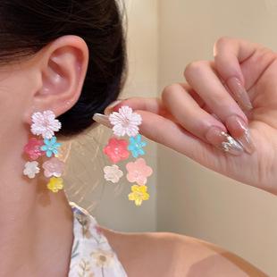 Aretes de tuerca de flor pequeña colorida de dopamina, dulces, geniales, versátiles, con borlas de temperamento, estilo de vacaciones junto al mar, aretes de personalidad única