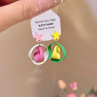 Aretes Geométricos de Estrella de Color Dopamina de Verano para Mujer Temperamento Dulce y Suave Aretes de Tuerca de Estrella de Cinco Puntas Nuevos Aretes