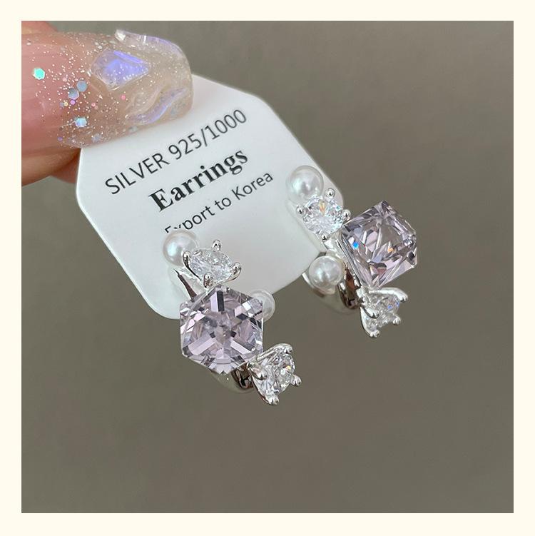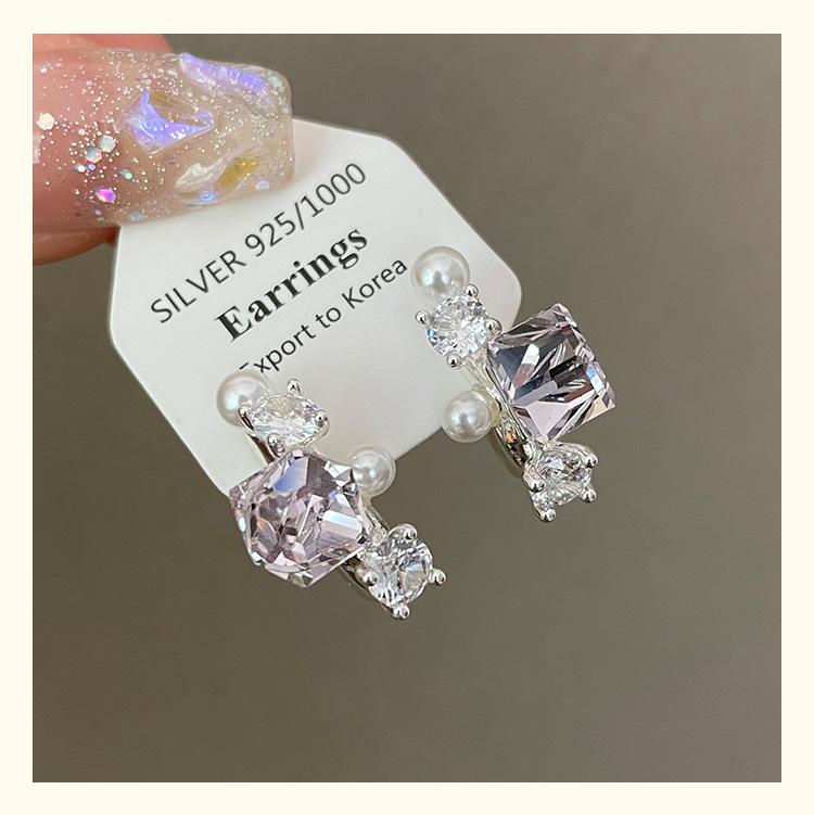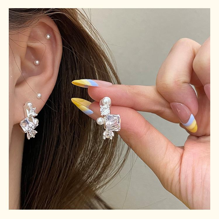 Aretes Coreanos Ins Super Flash Cristal Perla Zircón Nuevo Estilo Pequeños y Exquisitos Modernos Dulces Novedosos para Mujer