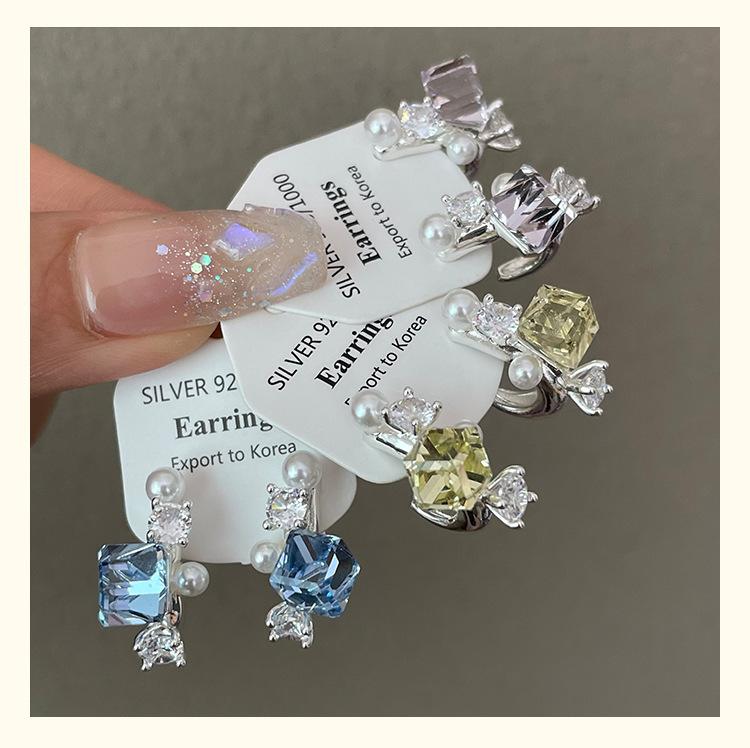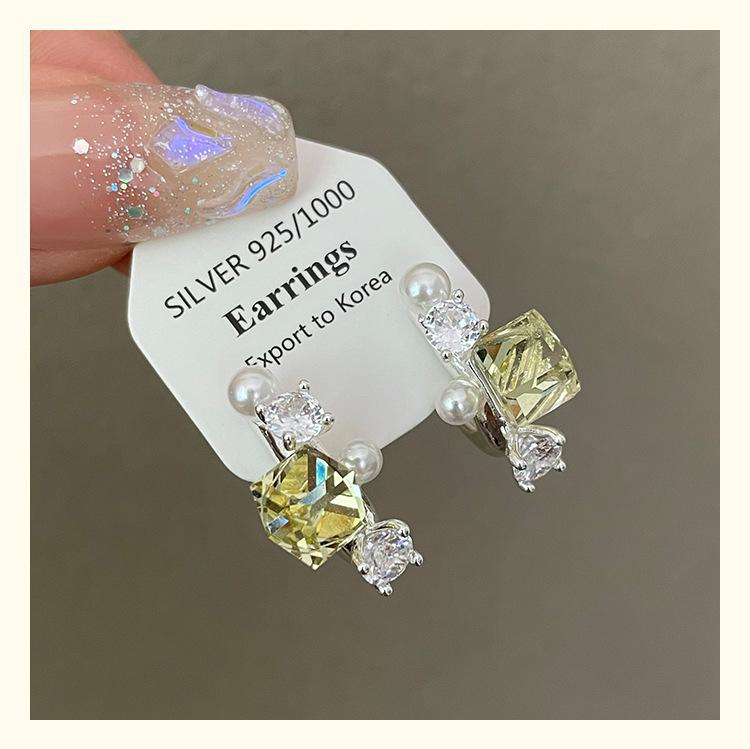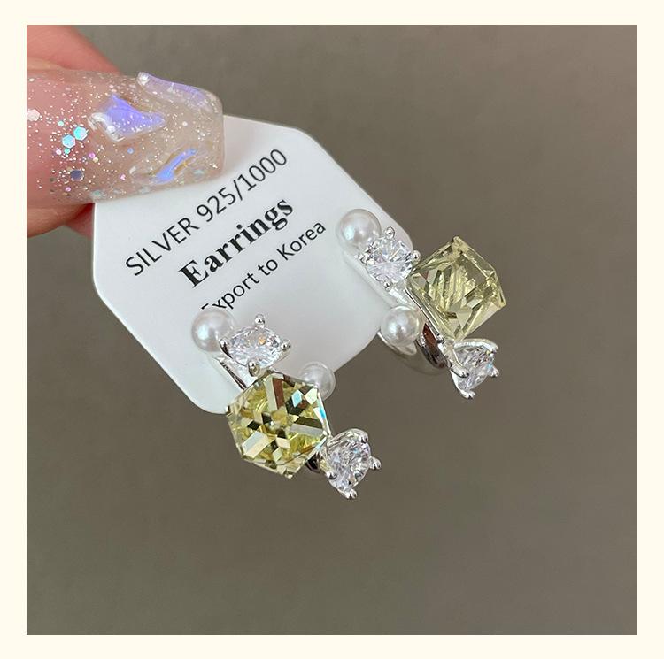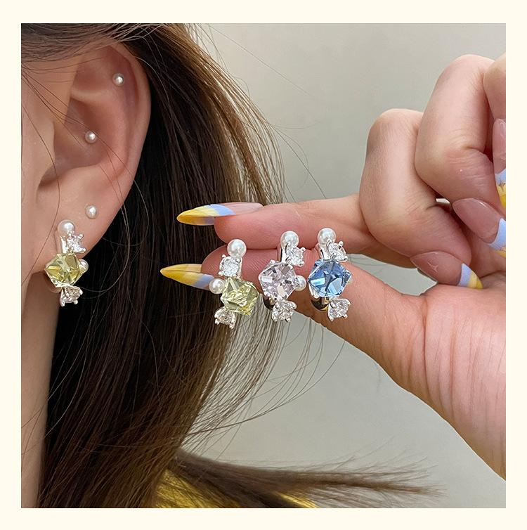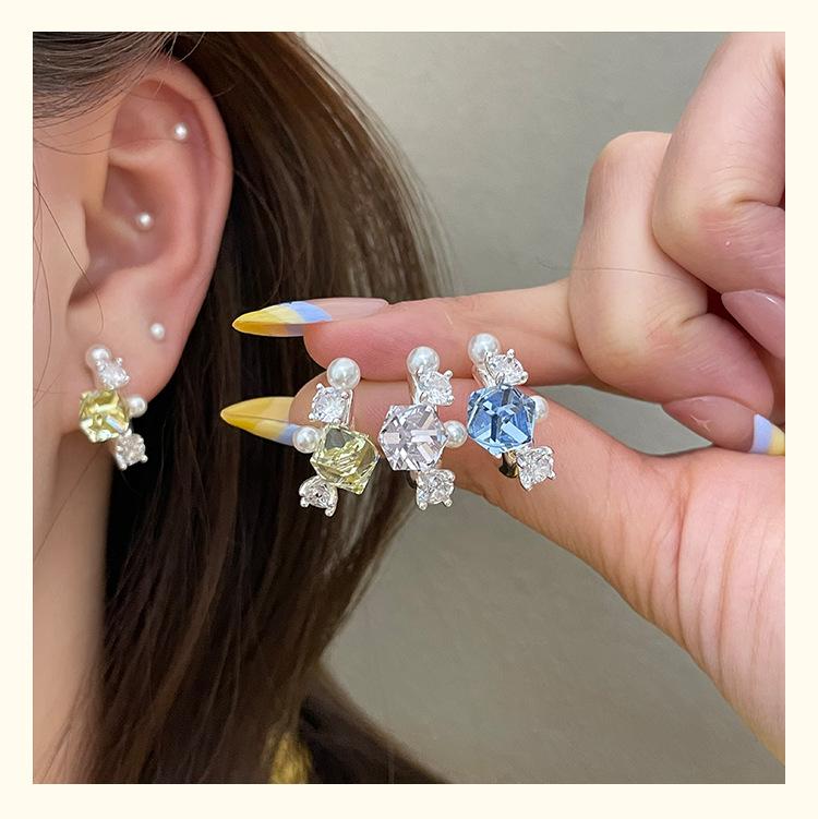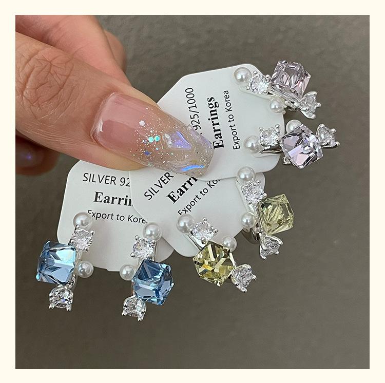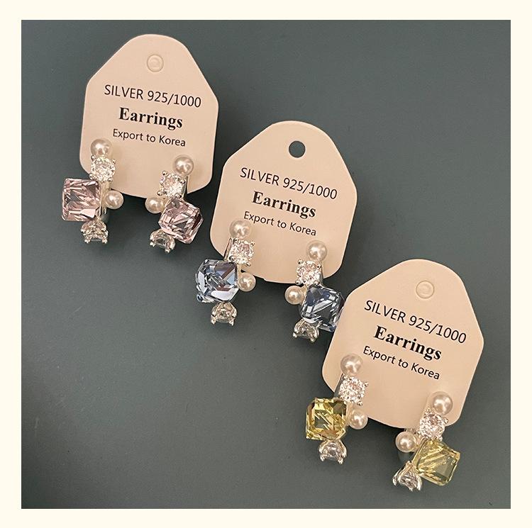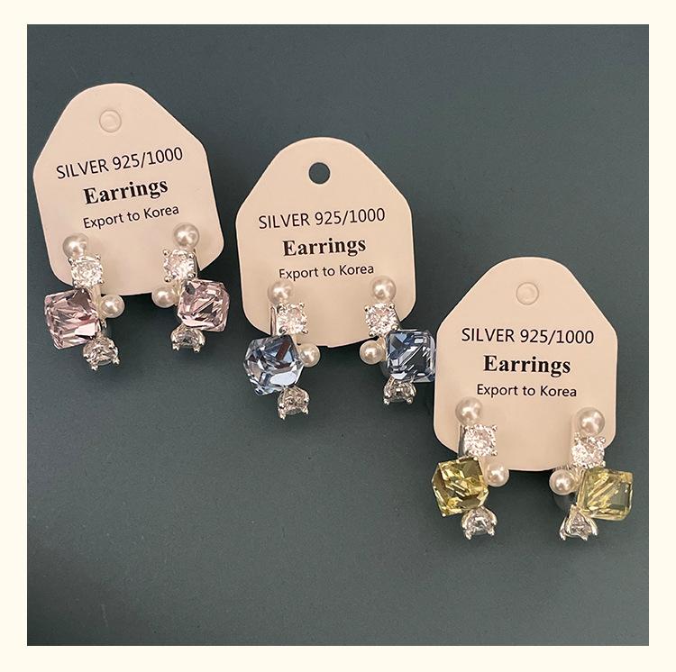 3329 blue super flash crystal pearl zircon stud earrings, 3329 yellow super flash crystal pearl zircon stud ea...