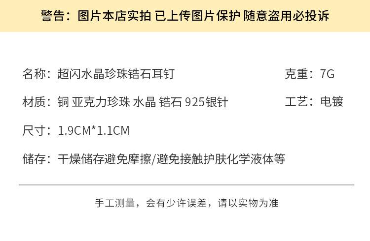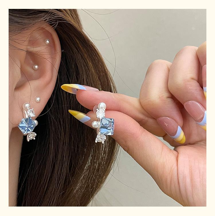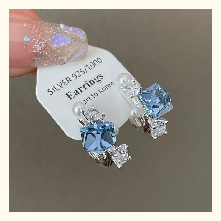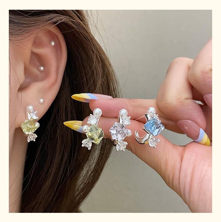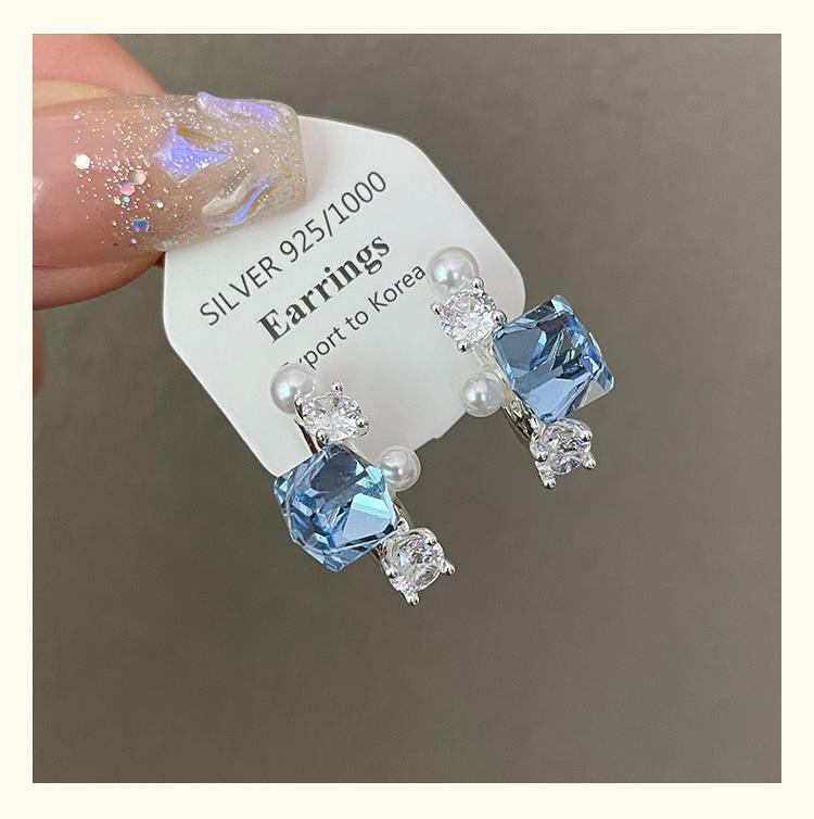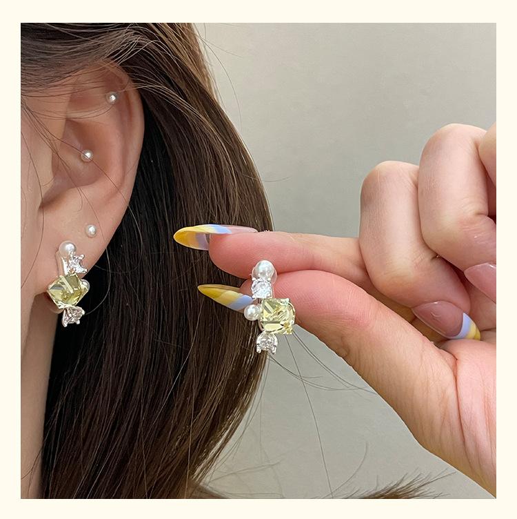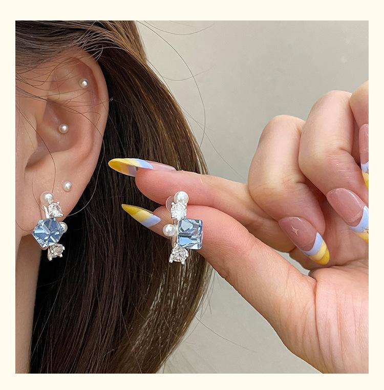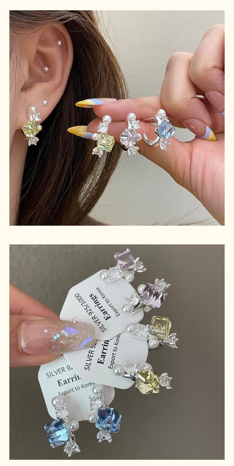 3329 blue super flash crystal pearl zircon stud earrings, 3329 yellow super flash crystal pearl zircon stud ea...