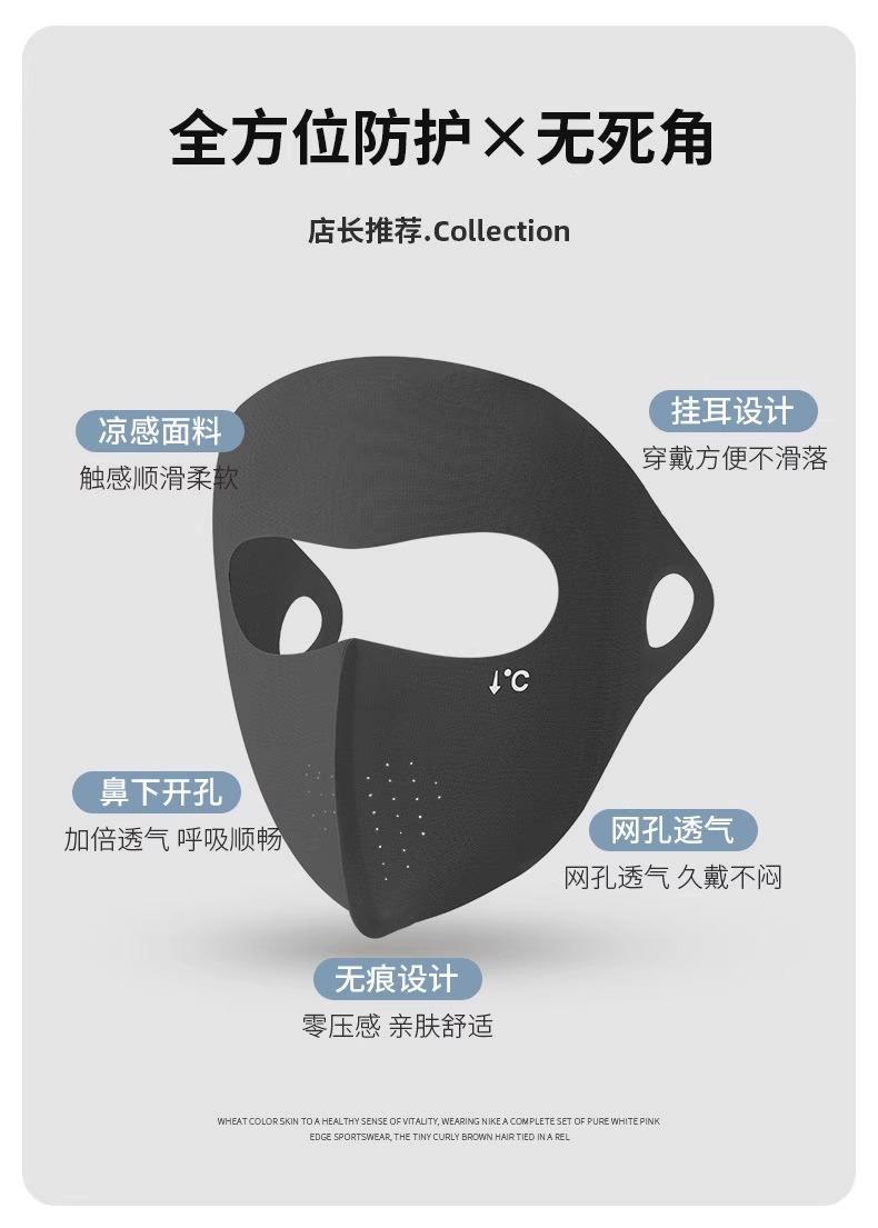 Máscara Facial Completa Nueva para Protección Solar para Hombres en Verano, Protección UV, Ciclismo al Aire Libre, Máscara para Conducir Transpirable de Seda de Hielo