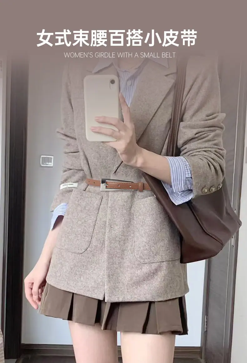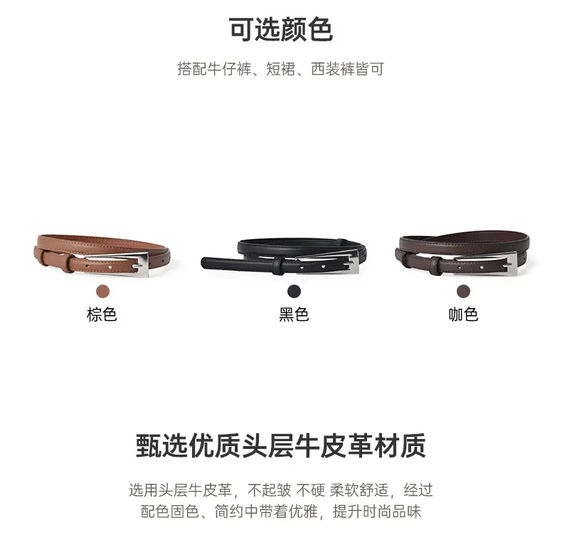 Cinturón Fino Retro para Mujer Accesorios de Cuero Genuino Primavera y Verano 2025 Nuevo Cuero Vacuno de Primera Capa Lujo Accesible Cinturón de Mujer Estilo Versátil
