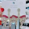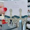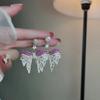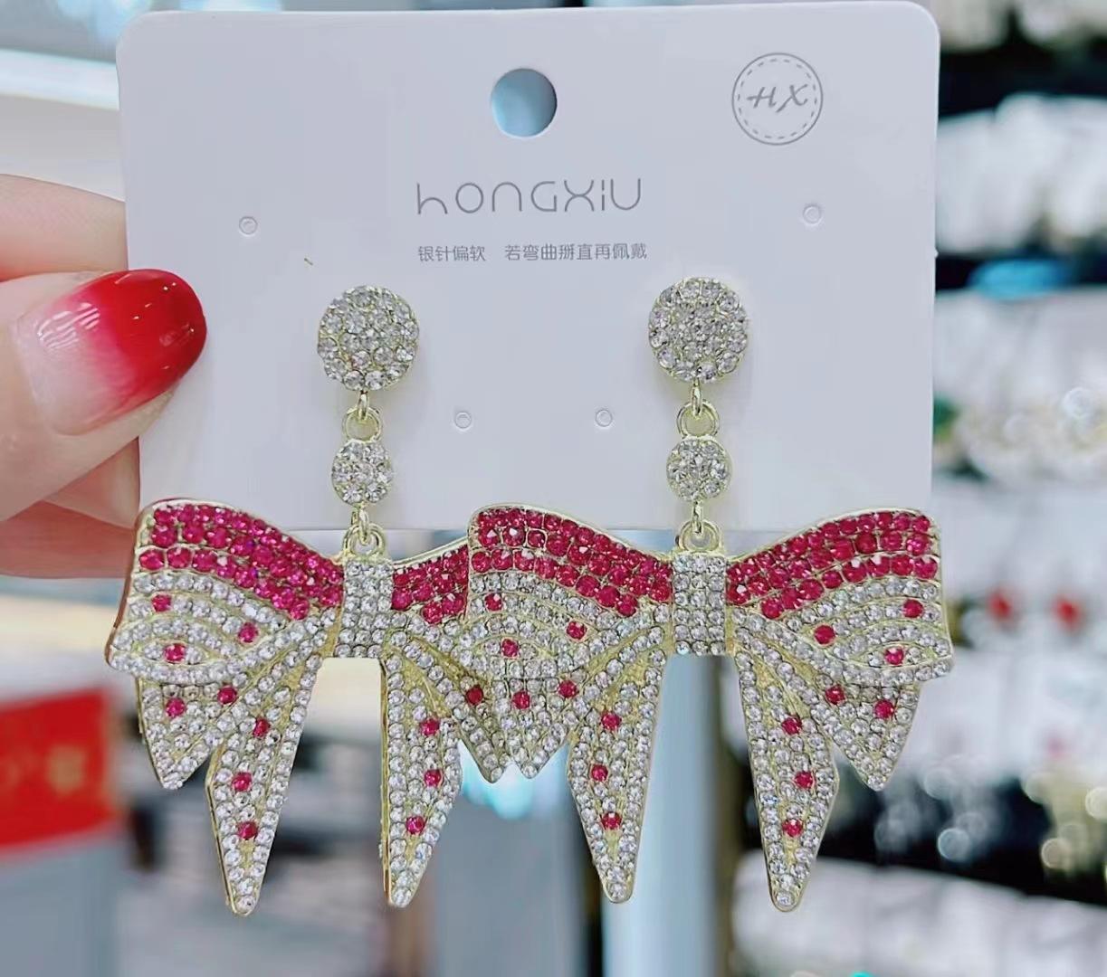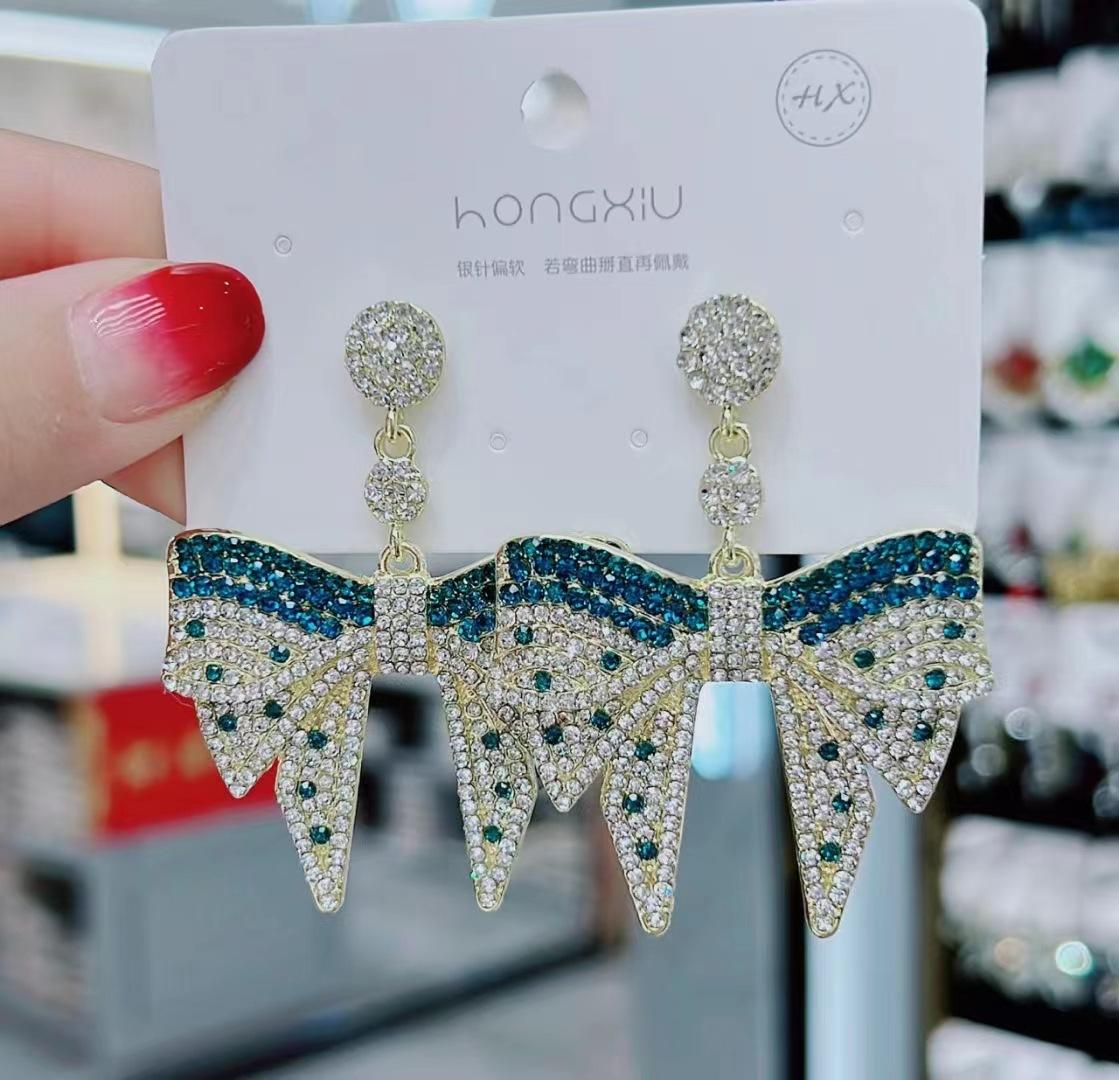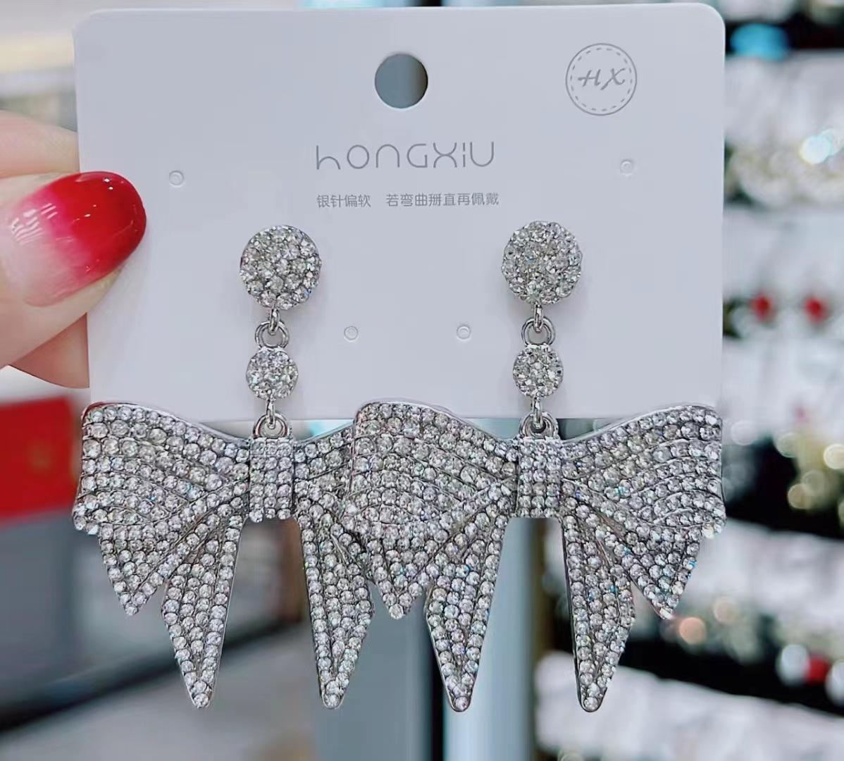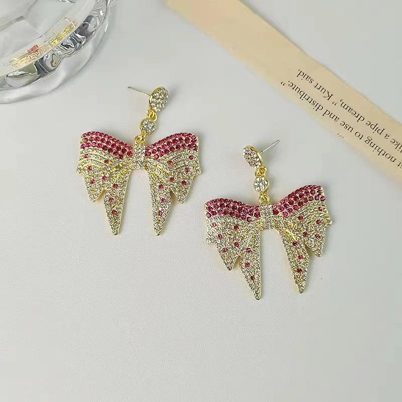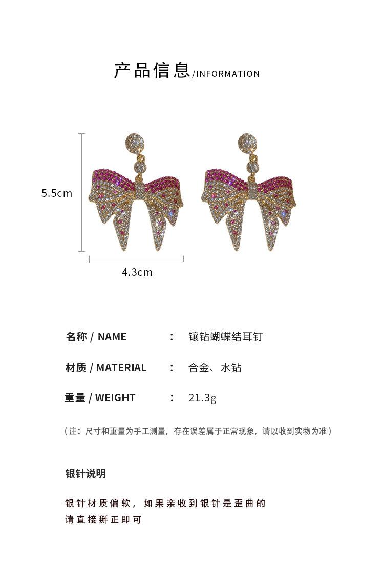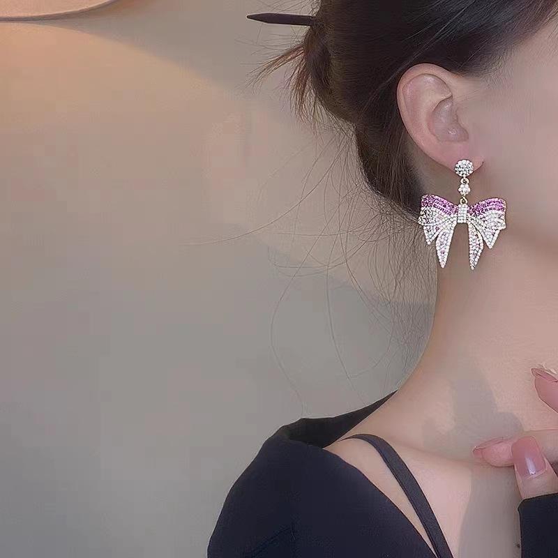 Pendientes de lazo de diamantes pequeños con cara exagerada francesa de aguja de plata, lujo ligero, nicho de alta gama, pendientes personalizados ins