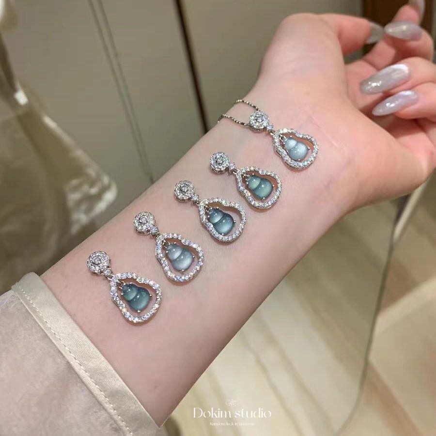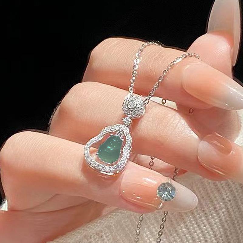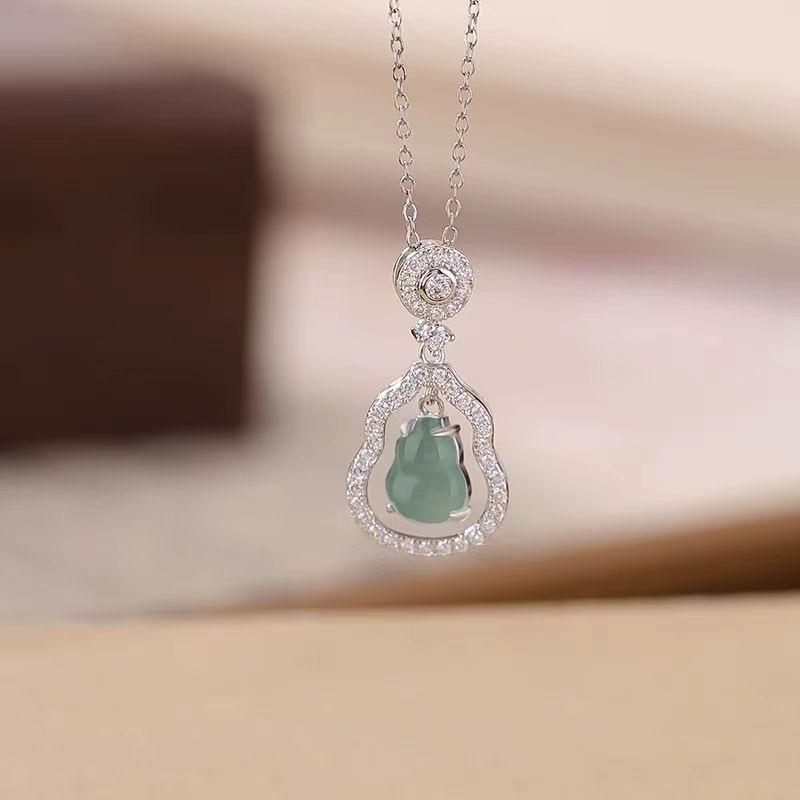 Collar de Calabaza de Jade Azul Agua Peligrosa Natural S925 Concha Plateada para Mujer Nuevo Estilo Chino Colgante de Alta Gama Cadena para Clavícula