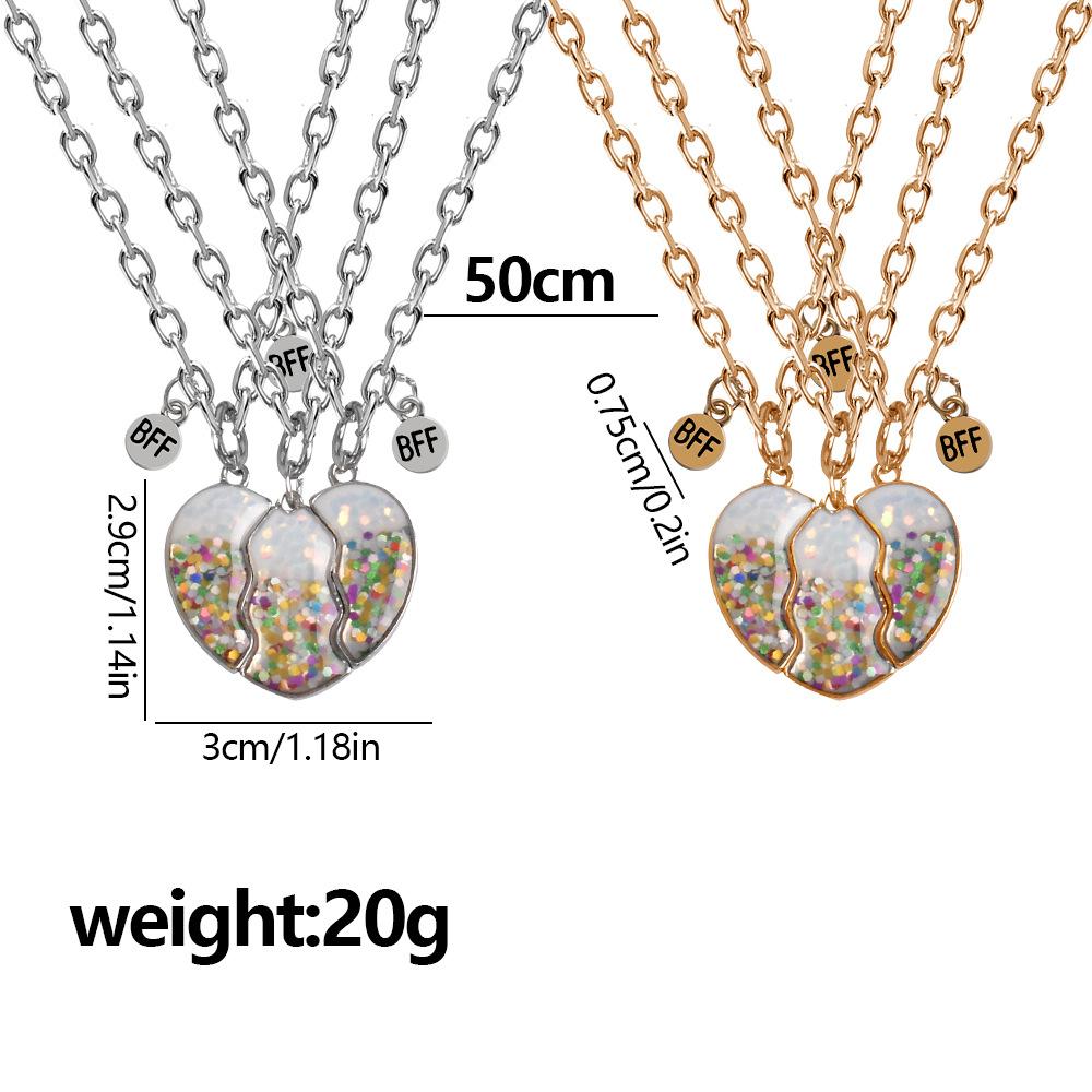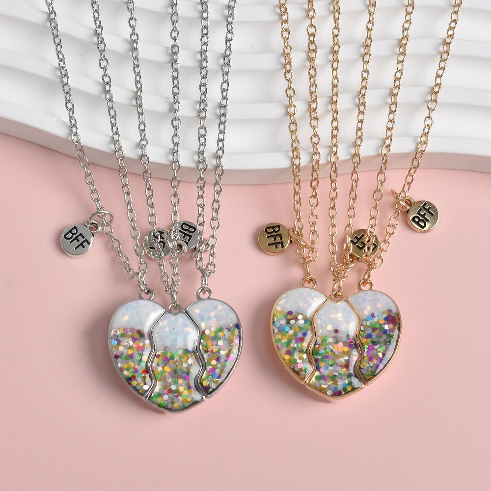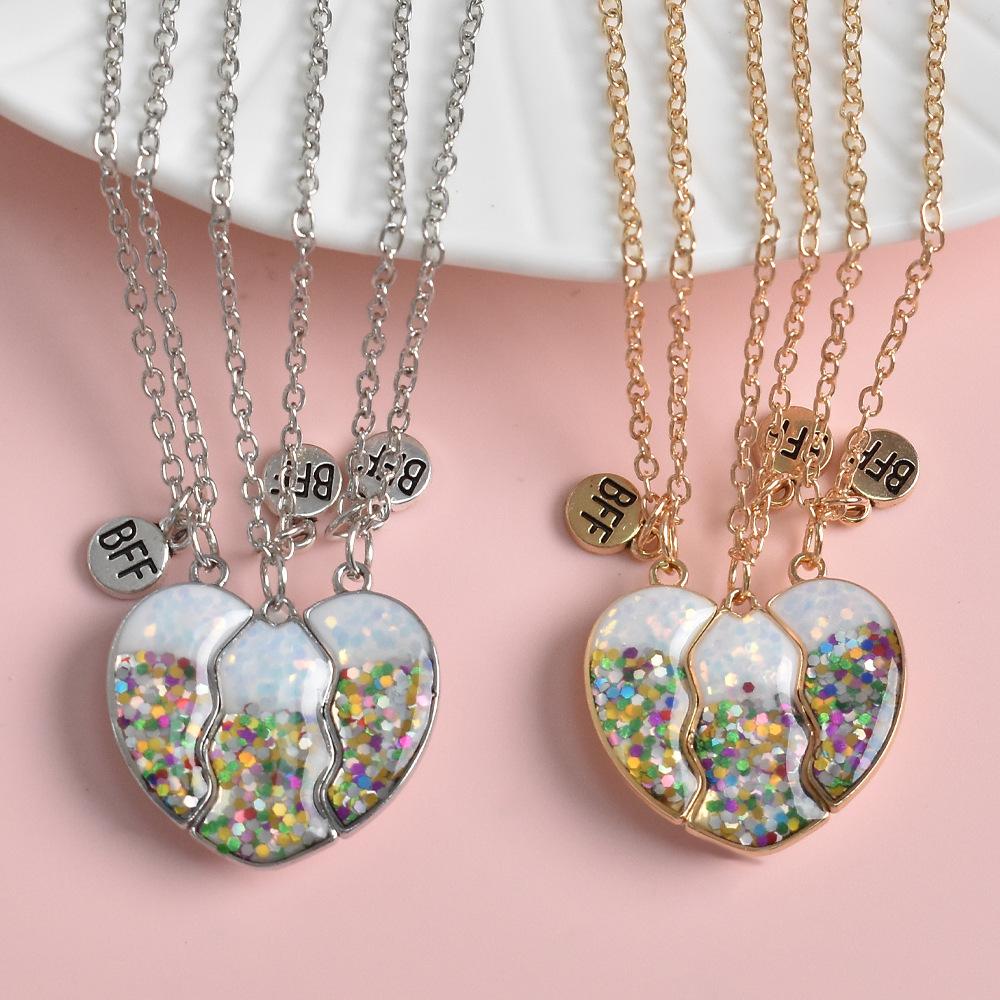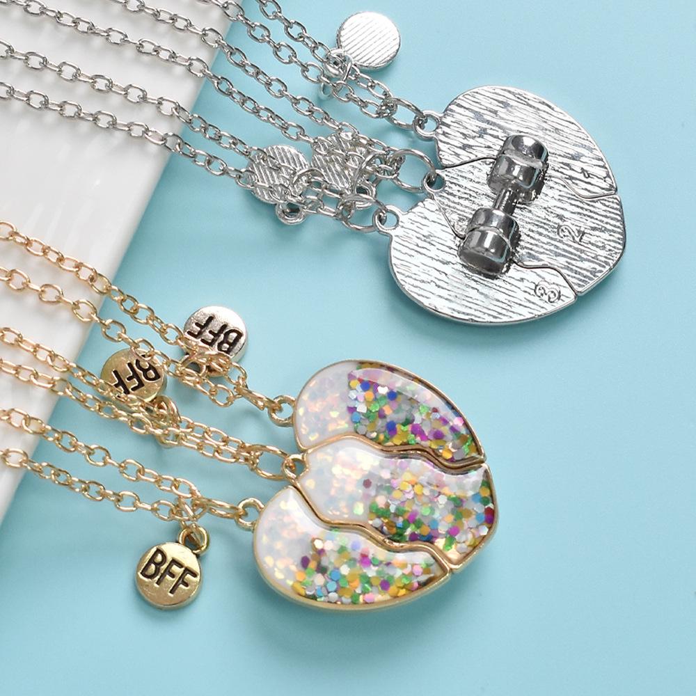 Nuevo Collar Transfronterizo de Resina con Corazón Magnético para Tres Personas Bff Mejor Amigo Amistad Colgante para Niñas
