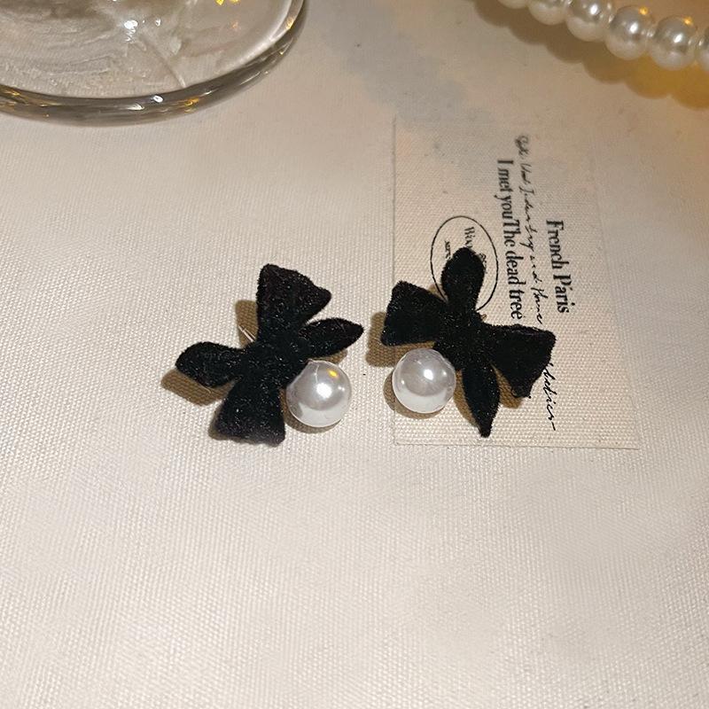 Compra 2023 nuevos aretes de perlas de temperamento de alta gama de lujo ligero aretes al por mayor aretes de lazo negro para mujer al por mayor en Joom.pro
