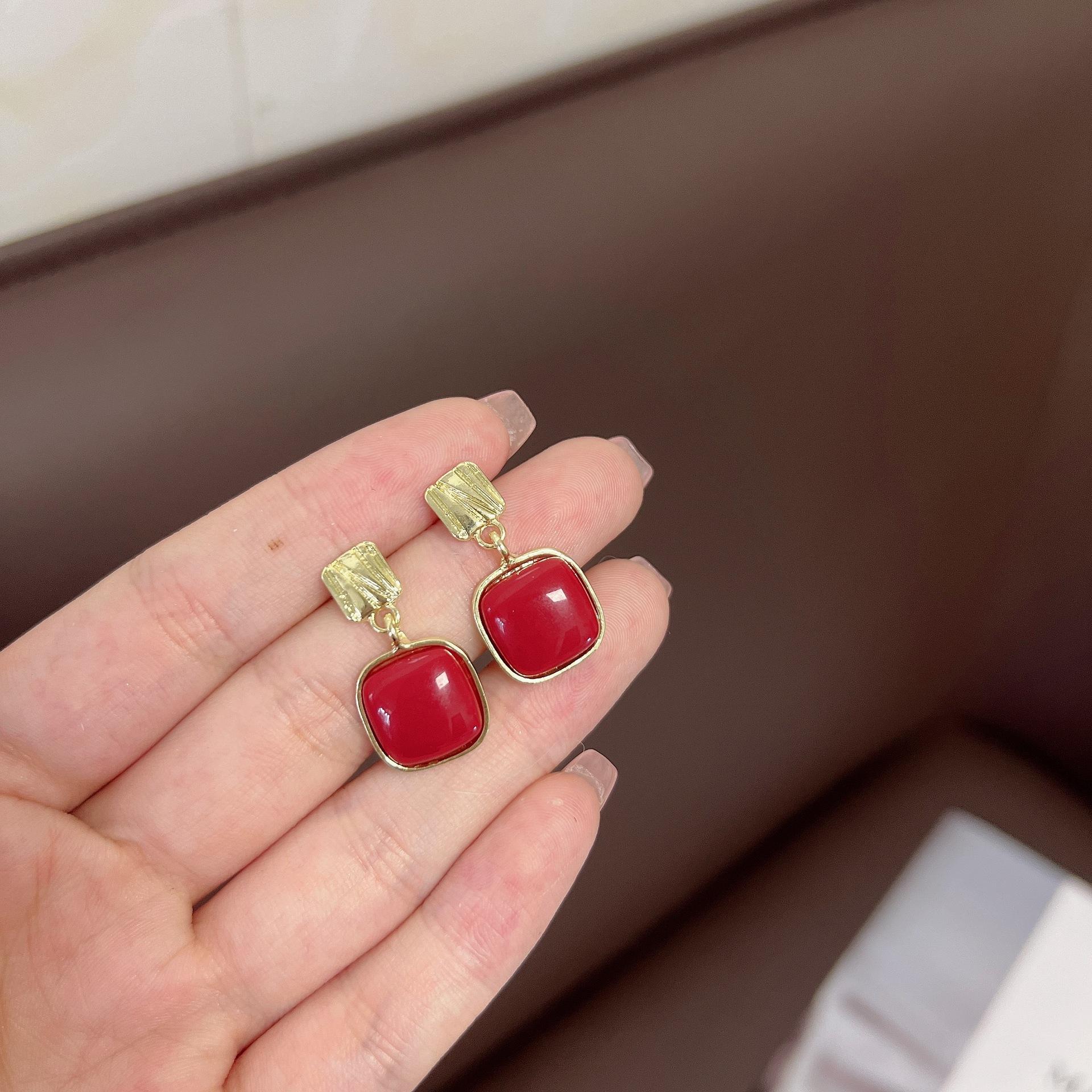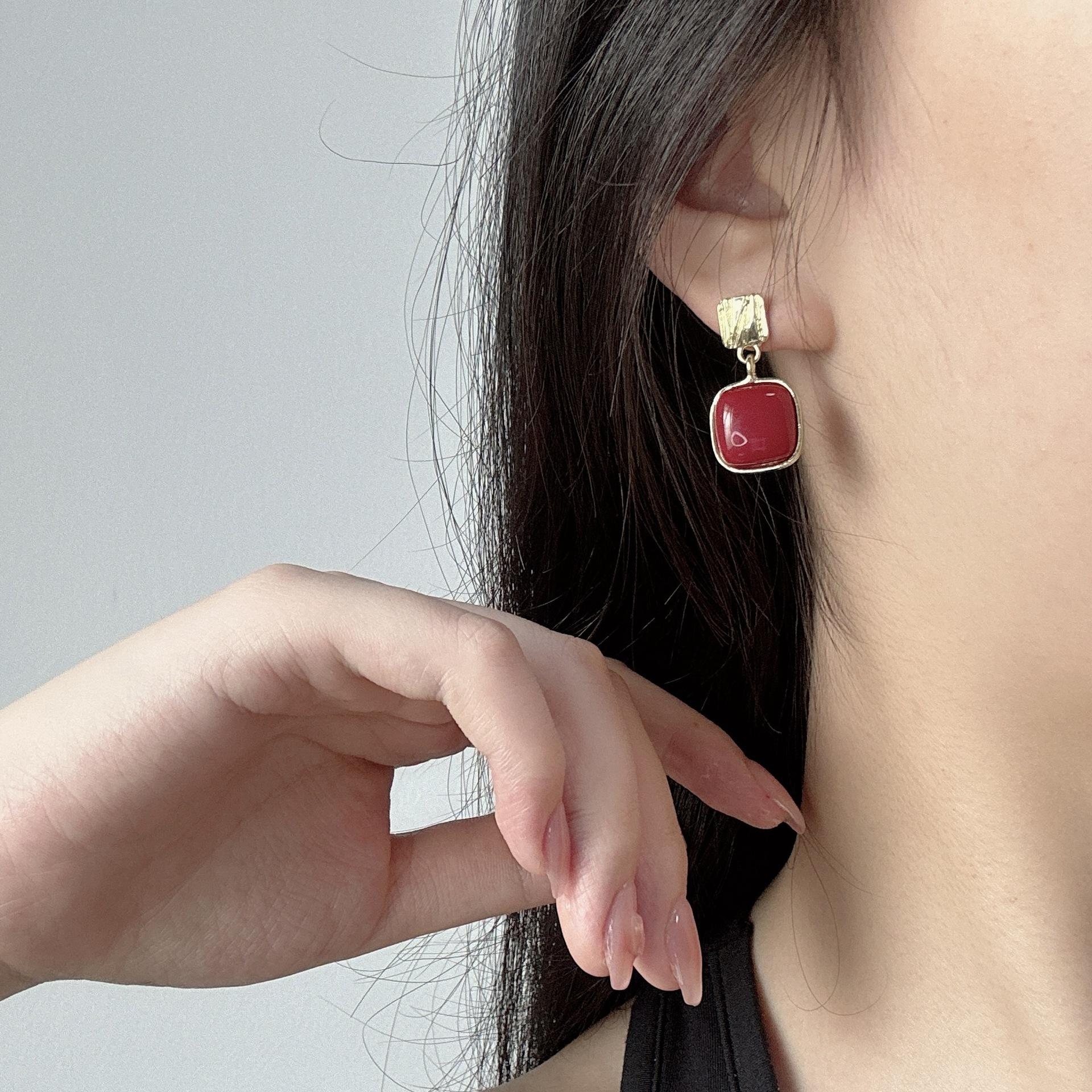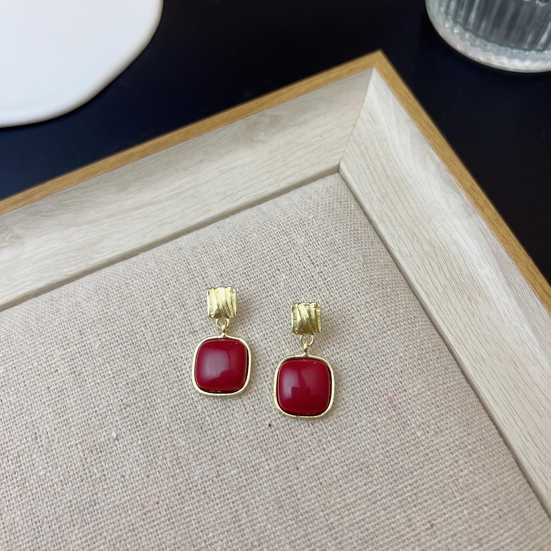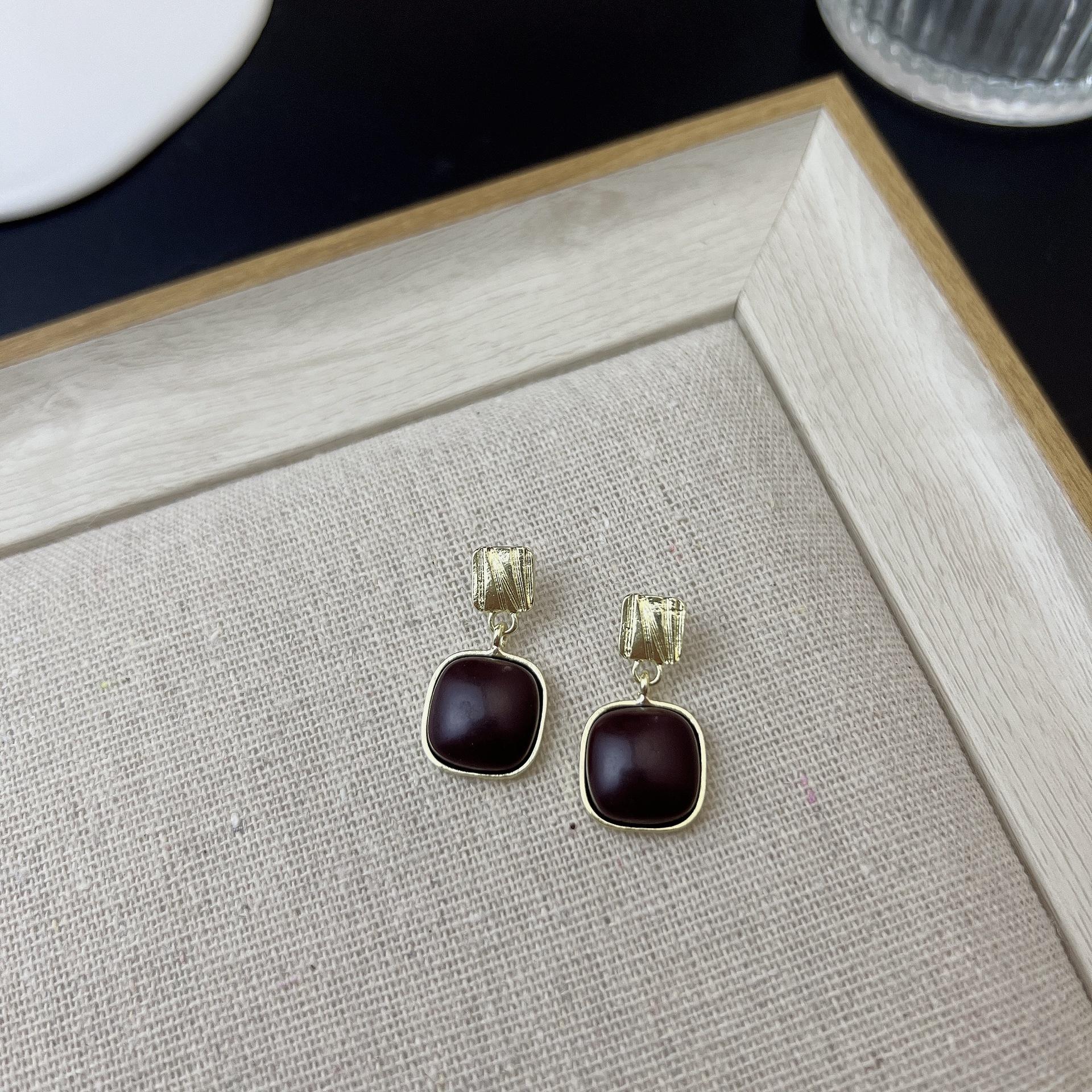 Pendientes Elegantes de Lujo Ligero para Ir al Trabajo, de Alta Gama, Estilo Nuevo, Retro, Modernos, Niche, Exquisitos, Joyería para la Oreja, Pendientes Geométricos Cuadrados para Mujer
