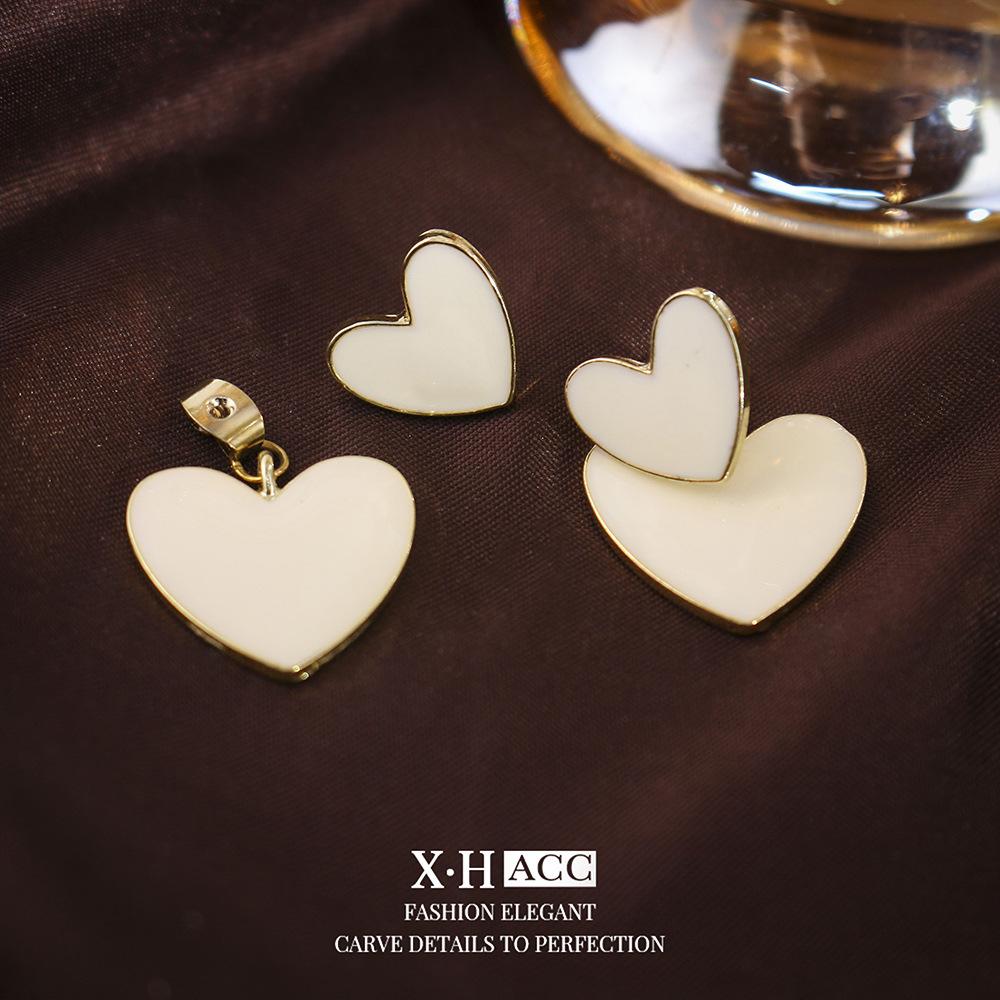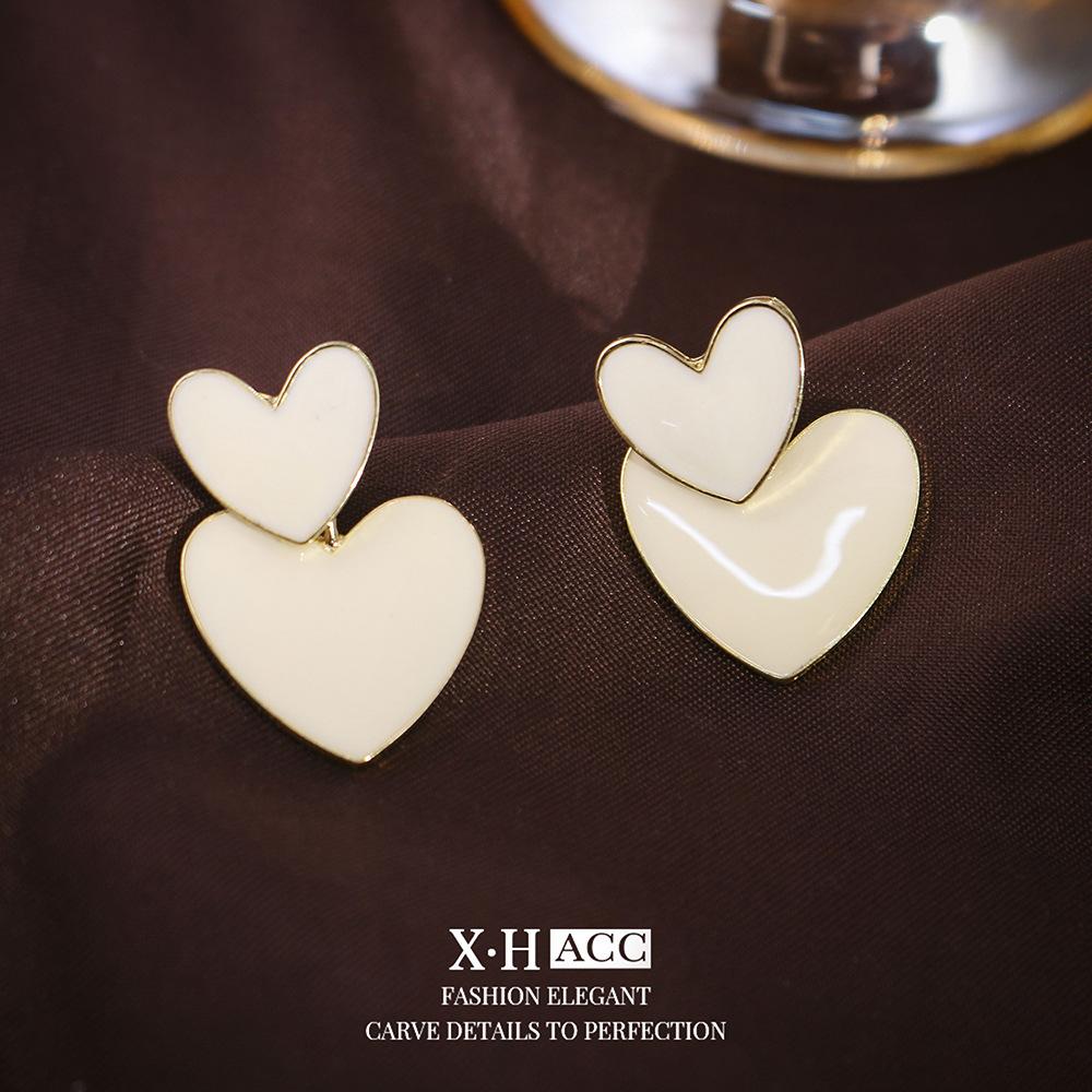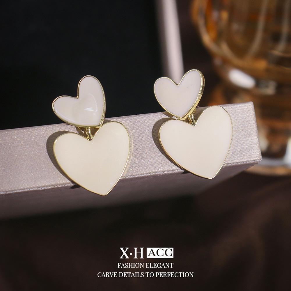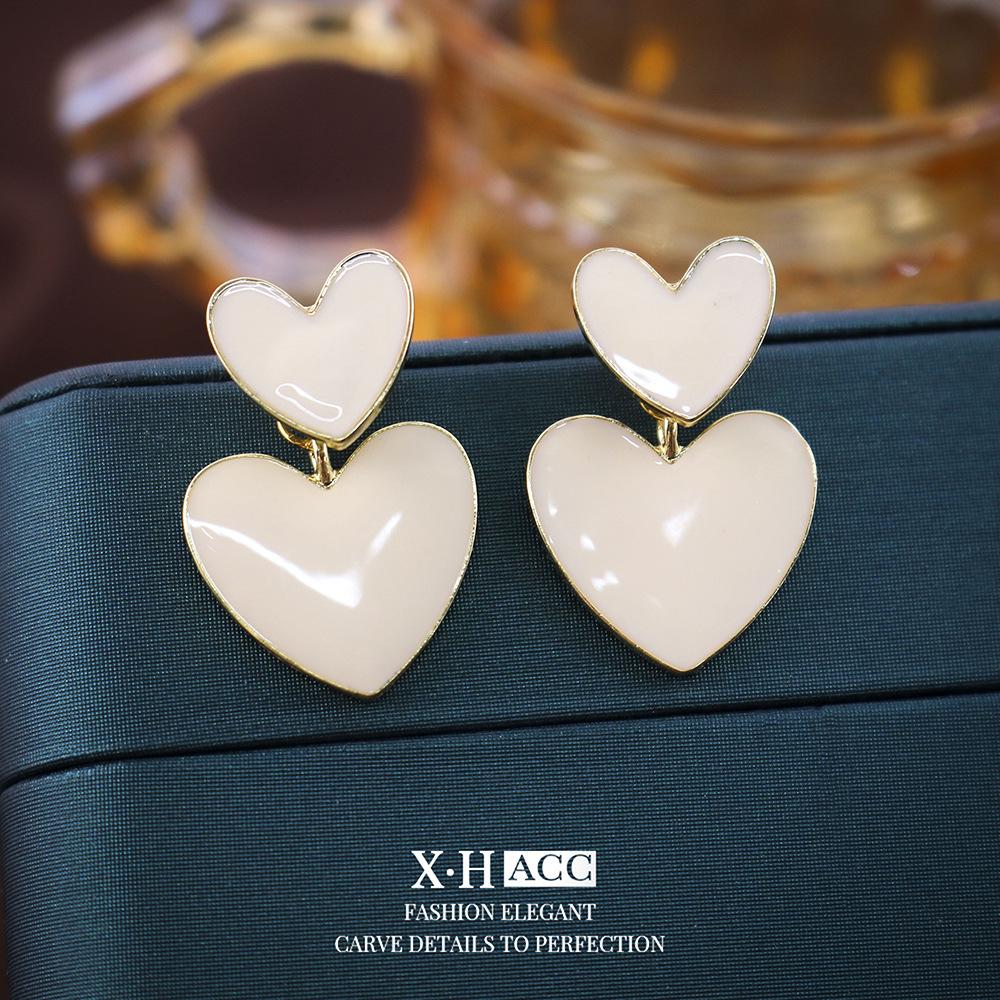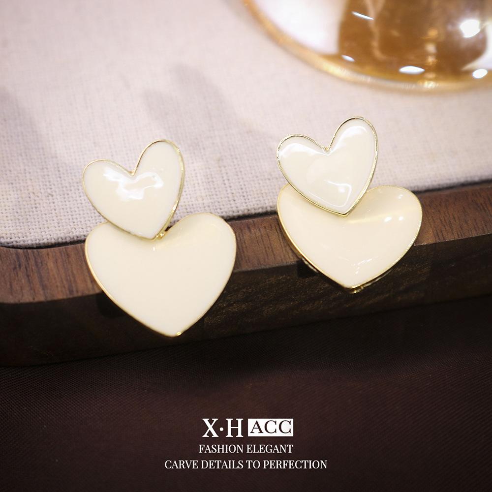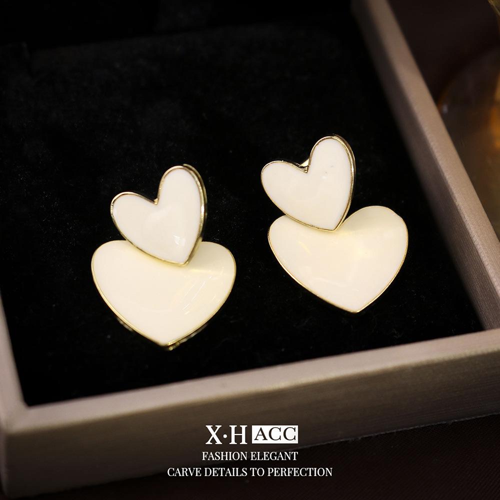 Pendientes de Amor con Gota de Aceite Blanco de Moda Aguja de Plata Pendientes de Lujo Ligero de Alta Gama Pendientes de Temperamento de Nicho Elegantes para Mujer