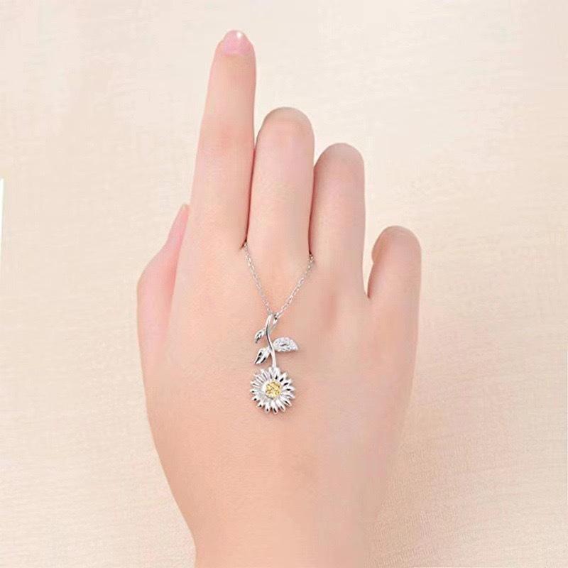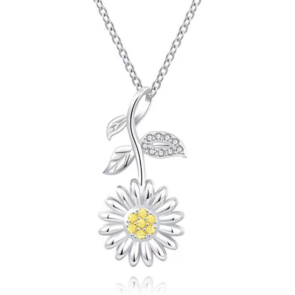 Collar de Plata de Girasol de Lujo Moderno que No se Desvanece para Mujer Versátil Colgante de Moda Nicho de Alta Gama Elegante Cadena para Clavícula