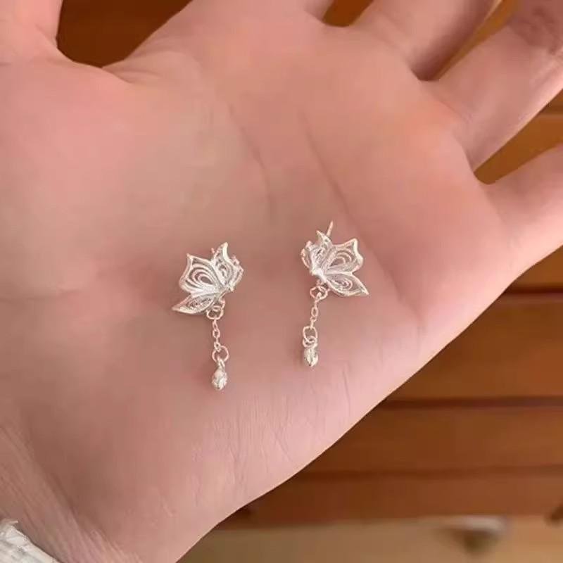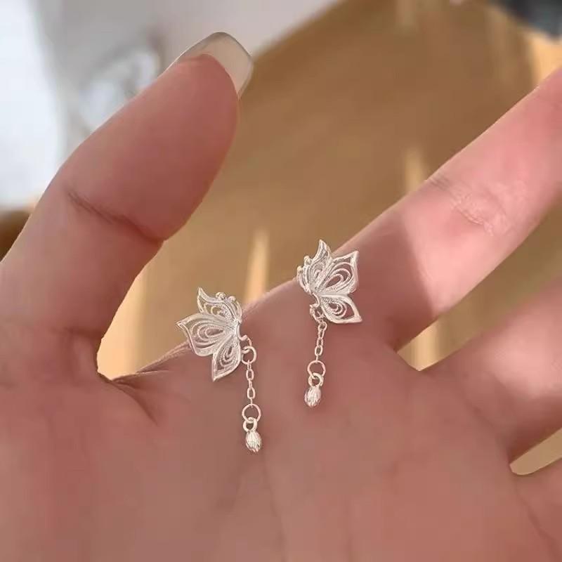 Aretes de Borla de Mariposa de Filigrana 2025 Nuevo Diseño Nicho de Lujo Ligero de Alta Gama Nuevos Aretes de Botón de Loto Chino