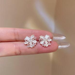Aretes de tuerca de flor hueca estilo francés de Hong Kong para mujer, aretes de diseño nicho de lujo ligero, temperamento de alta gama, aretes de moda versátiles
