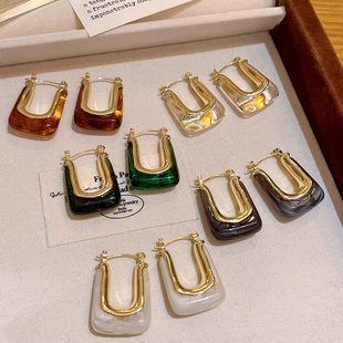Aretes retro de resina en forma de U estilo Hong Kong, aretes de temperamento de personalidad única europea y americana, diseño nicho, aretes de moda