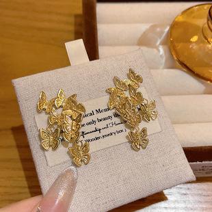 Aretes de Tuerca Borla Mariposa Retro Oro Europeo y Americano Aretes de Sentido de Lujo Ligero y Alta Gama Temperamento Elegante Personalidad Única Aretes Mujer