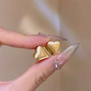 Puños para Orejas de Corazón de Metal Cepillado Estilo Coreano Lujo Ligero Elegante Temperamento Diseño de Personalidad Aretes de Alta Gama Pendientes de Tuerca Joyería para la Oreja