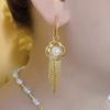 Nuevos aretes largos de borla de perlas con enrollado en espiral para mujer, aretes versátiles, adelgazantes, elegantes, de moda y de alta gama para mujer