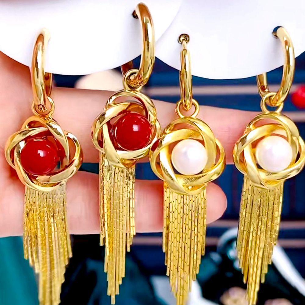 Compra Nuevos aretes largos de borla de perlas con enrollado en espiral para mujer, aretes versátiles, adelgazantes, elegantes, de moda y de alta gama para mujer al por mayor en Joom.pro