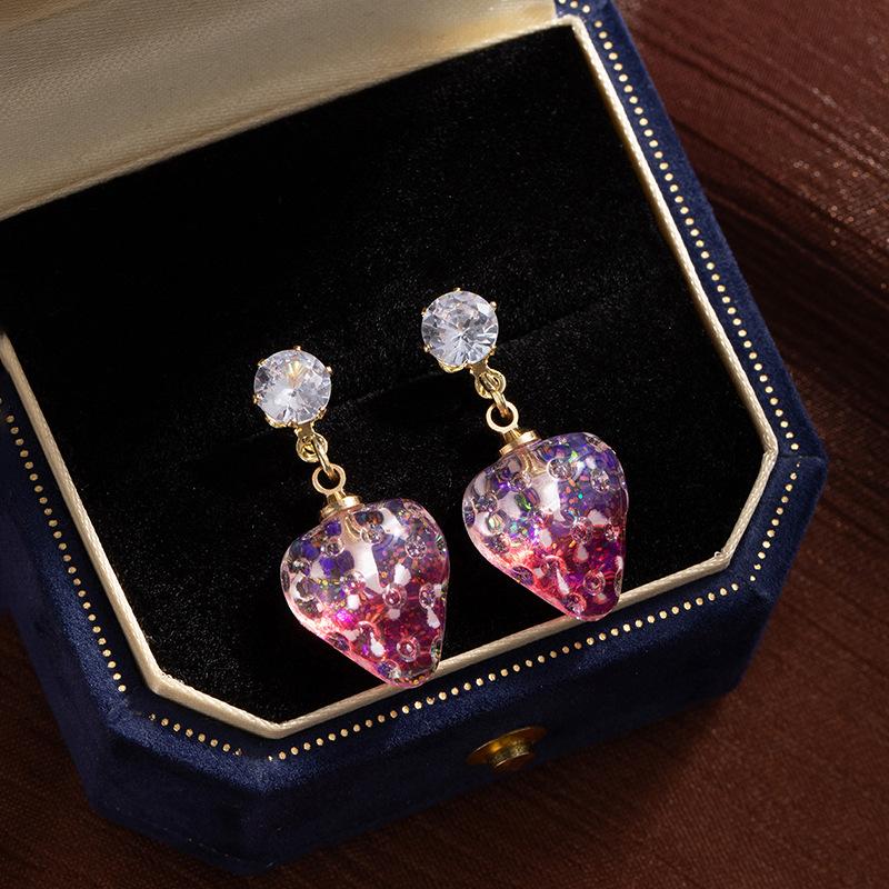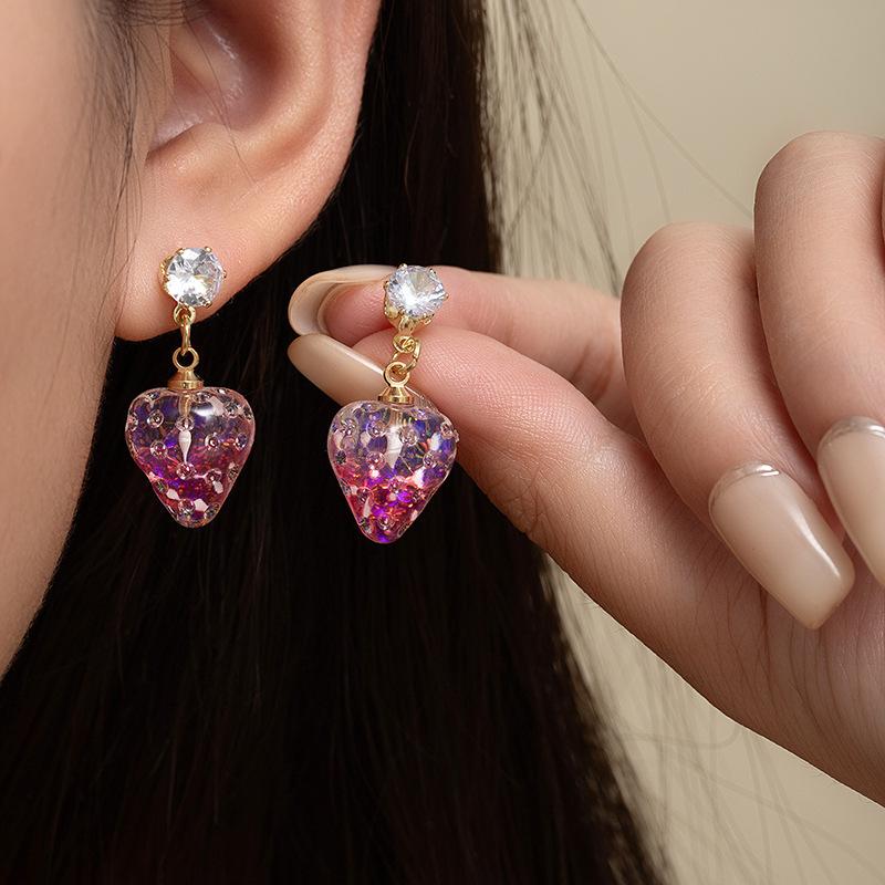 Aretes de Aguja de Plata Esterlina de Resina Dulce de Verano Fresa Cereza Uva Fruta Lindo Temperamento Femenino Frescos Versátiles Aretes Fuente al por Mayor