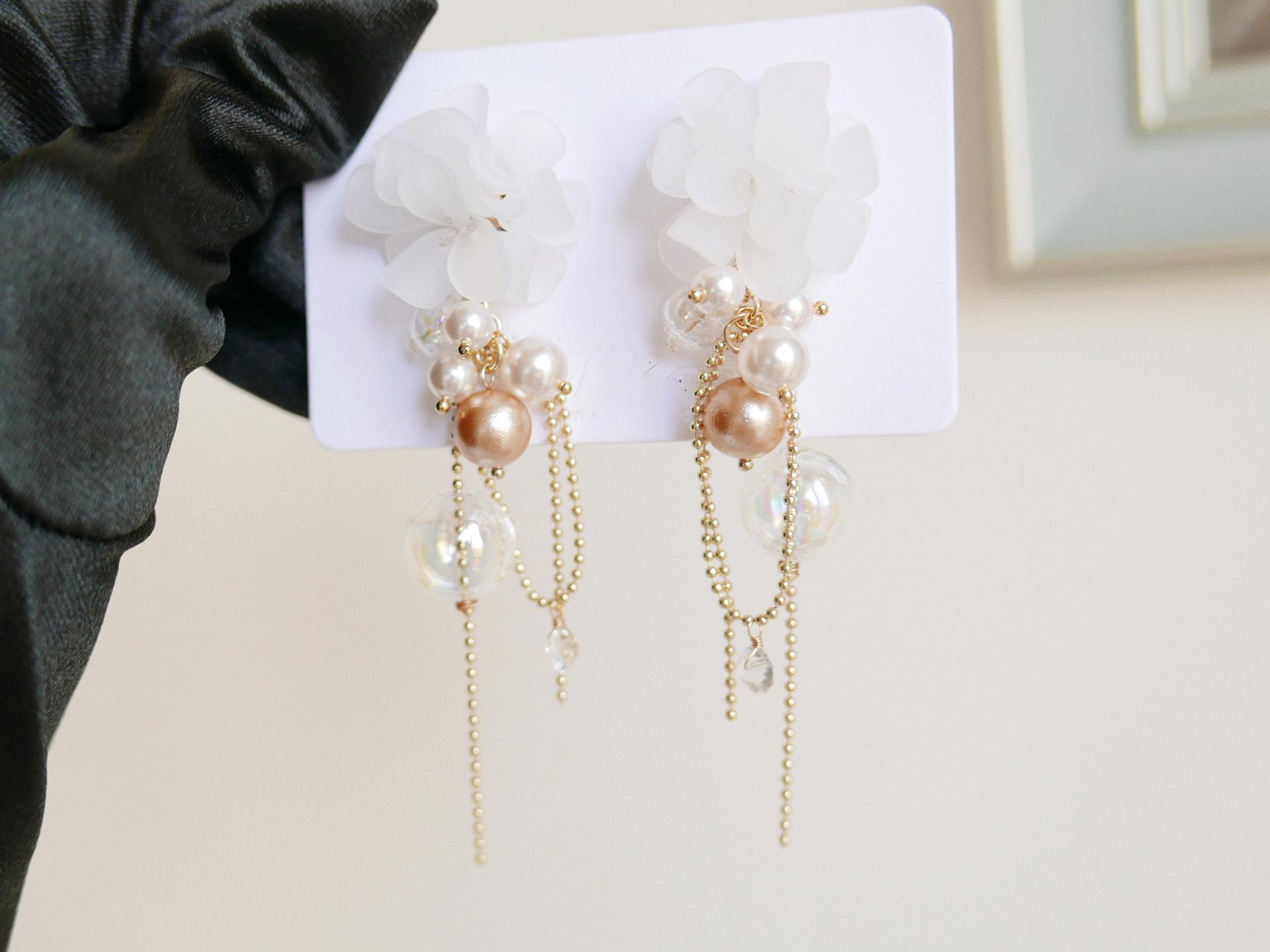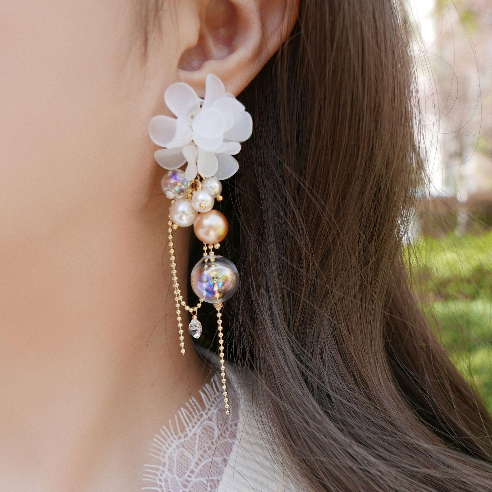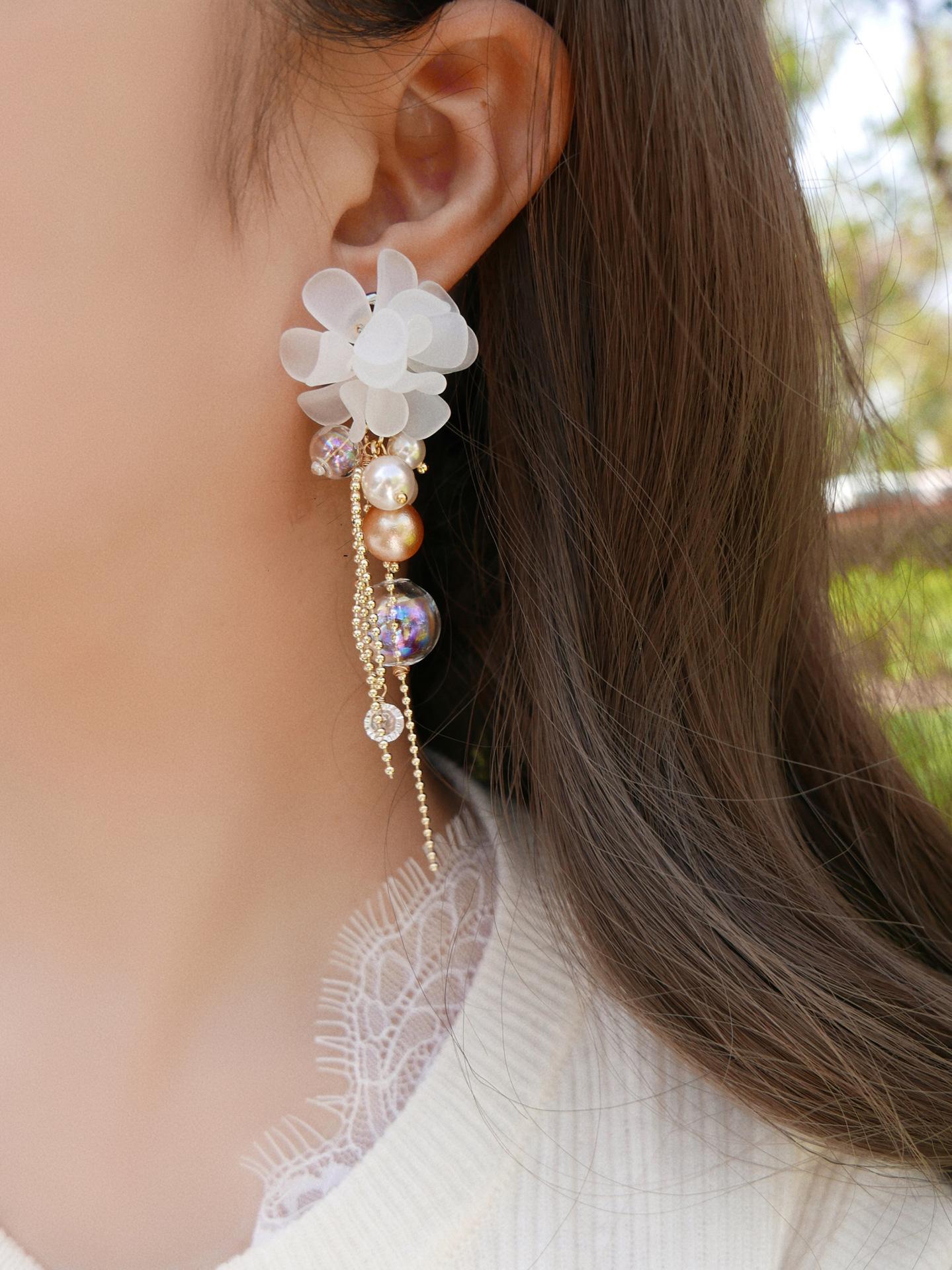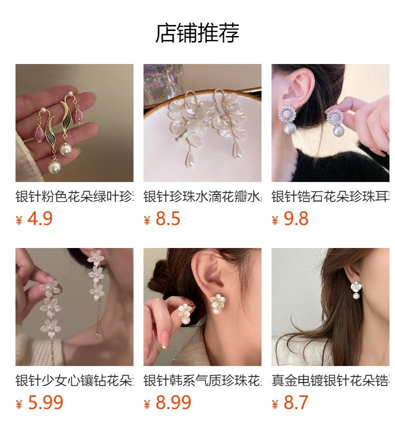 Aretes de Borla de Flor de Perla de Aguja de Plata Retro Lujo Ligero Versátil Aretes Nicho Temperamento Aretes de Gama Alta Venta al por Mayor para Mujeres
