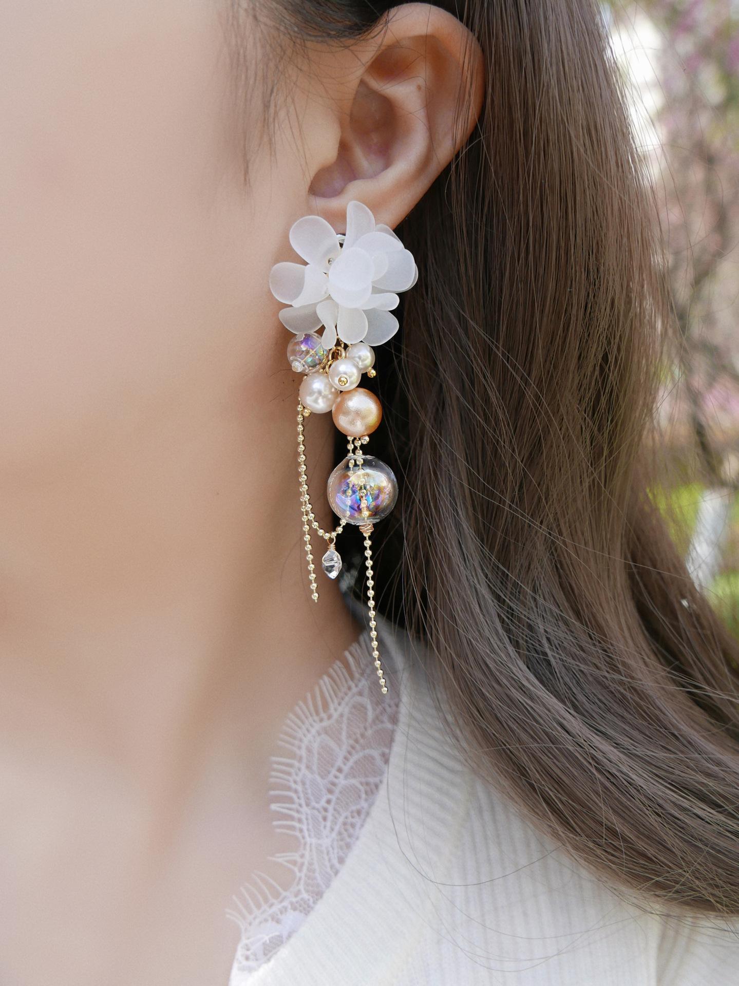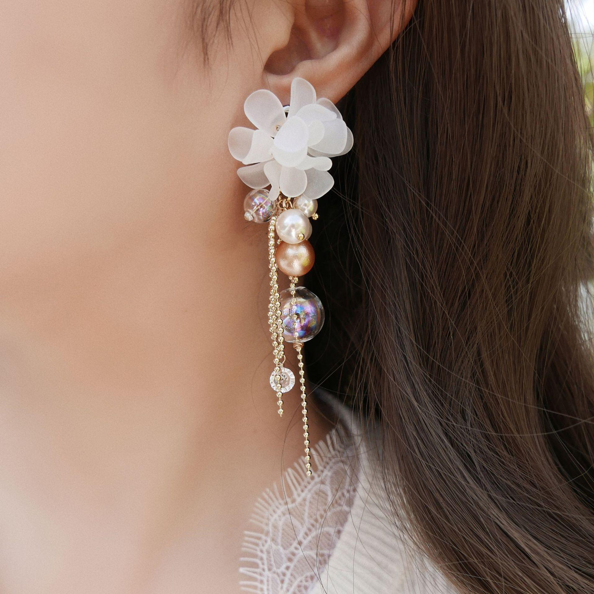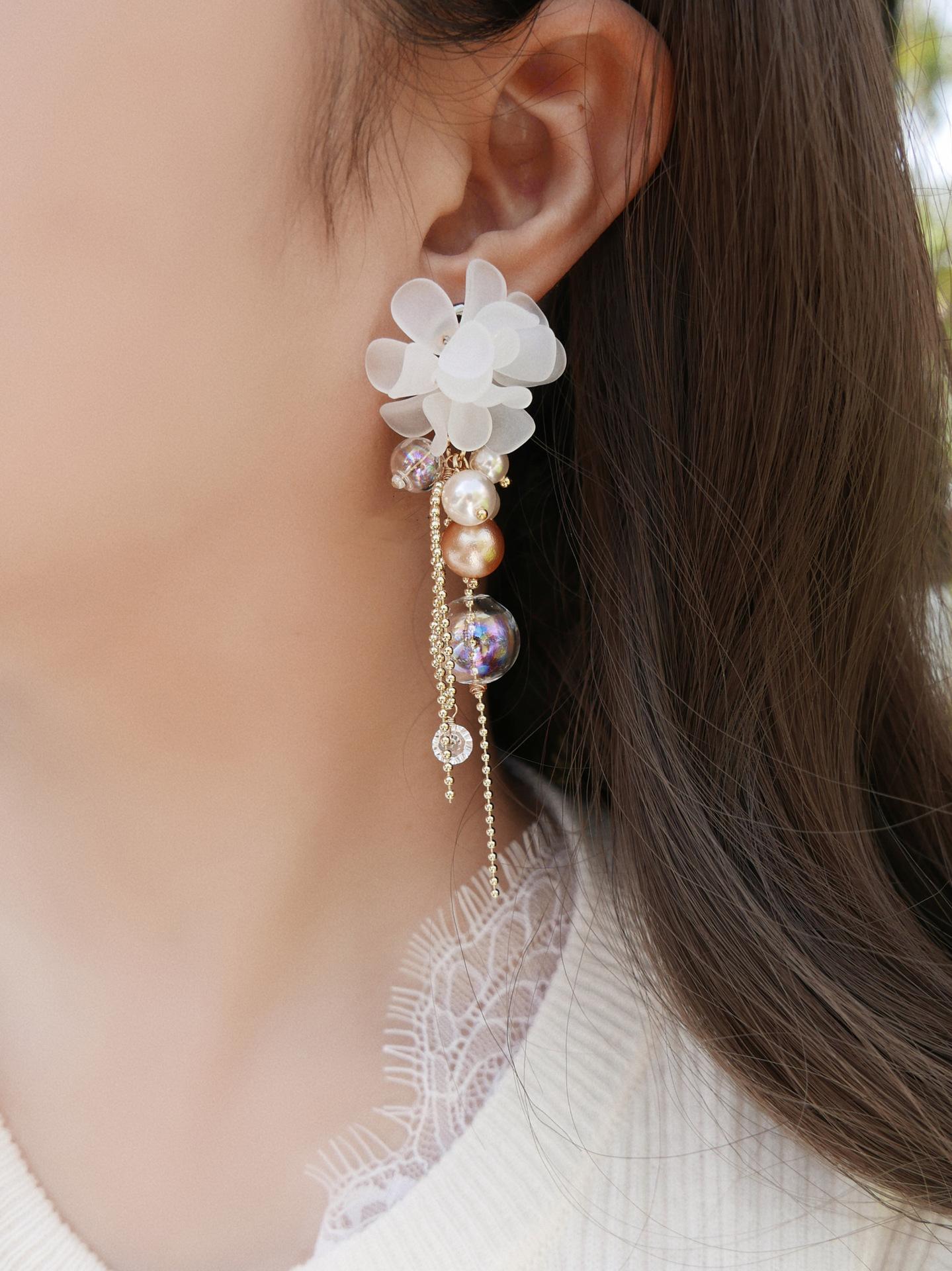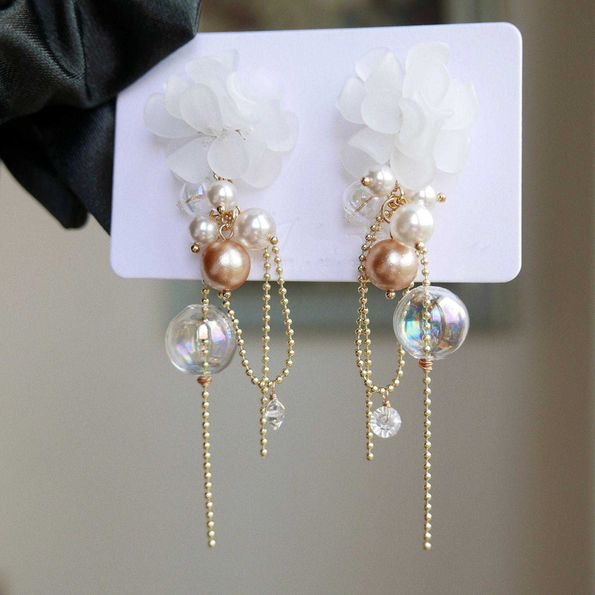 Aretes de Borla de Flor de Perla de Aguja de Plata Retro Lujo Ligero Versátil Aretes Nicho Temperamento Aretes de Gama Alta Venta al por Mayor para Mujeres