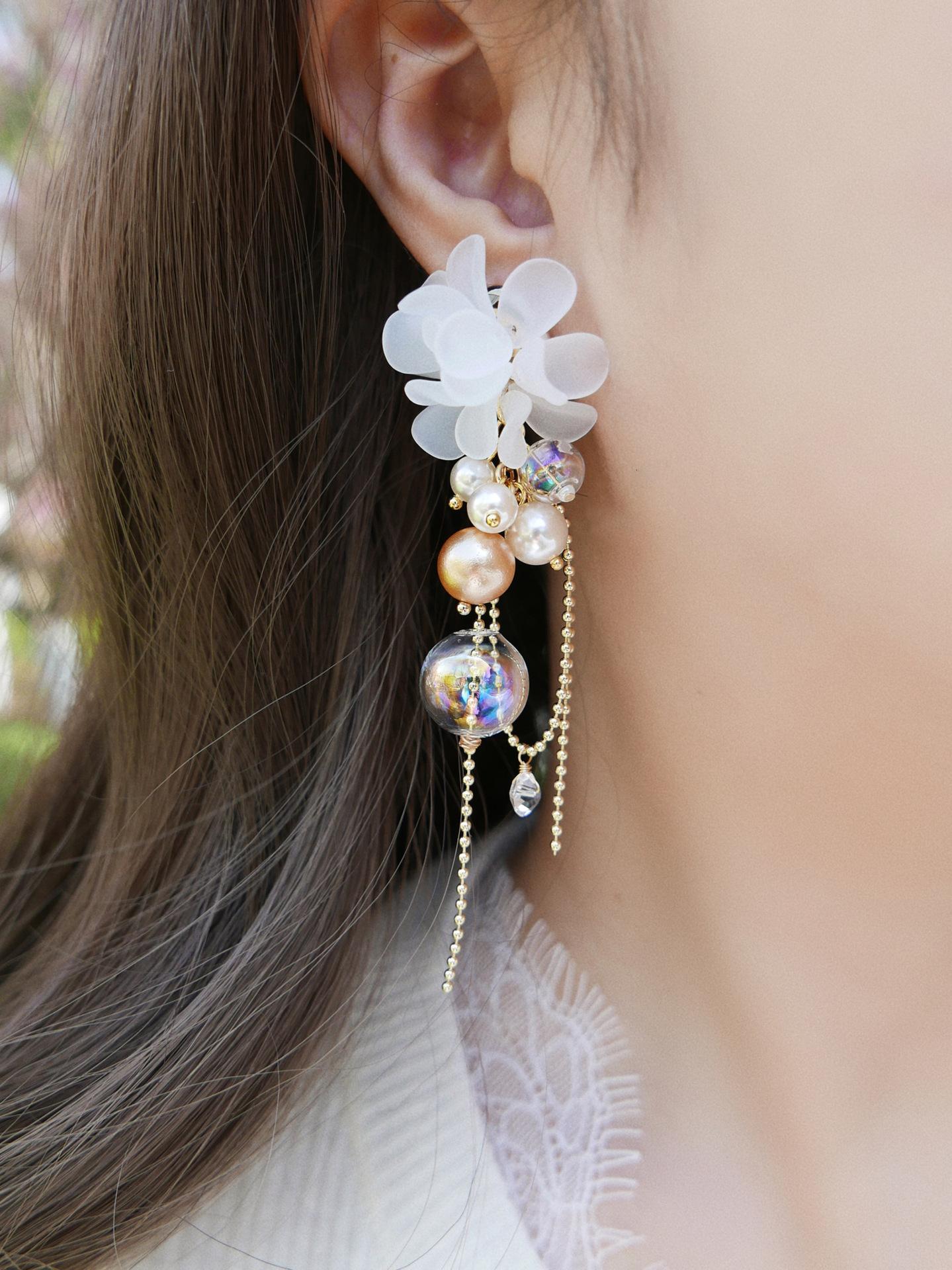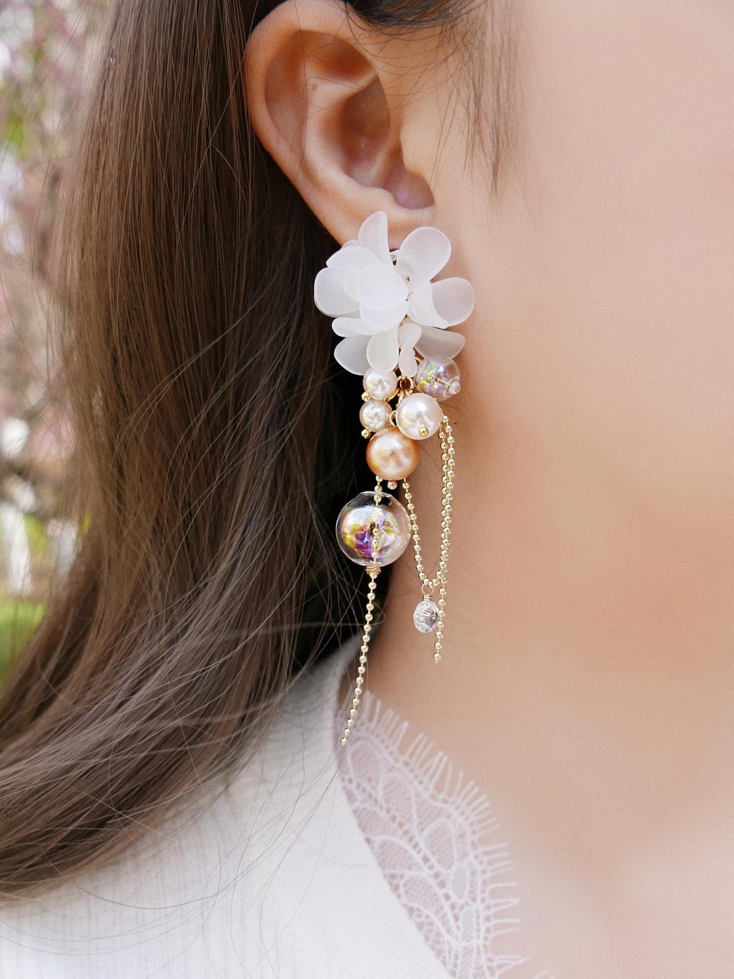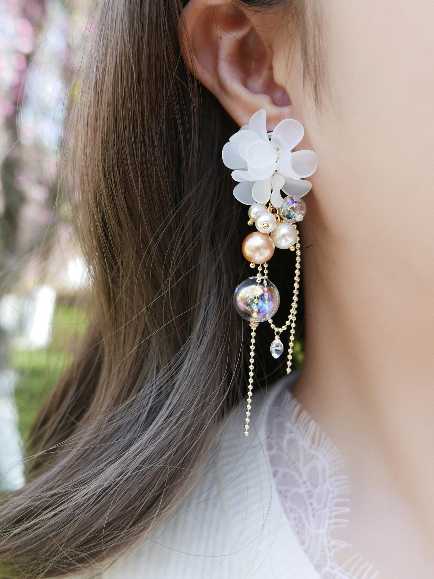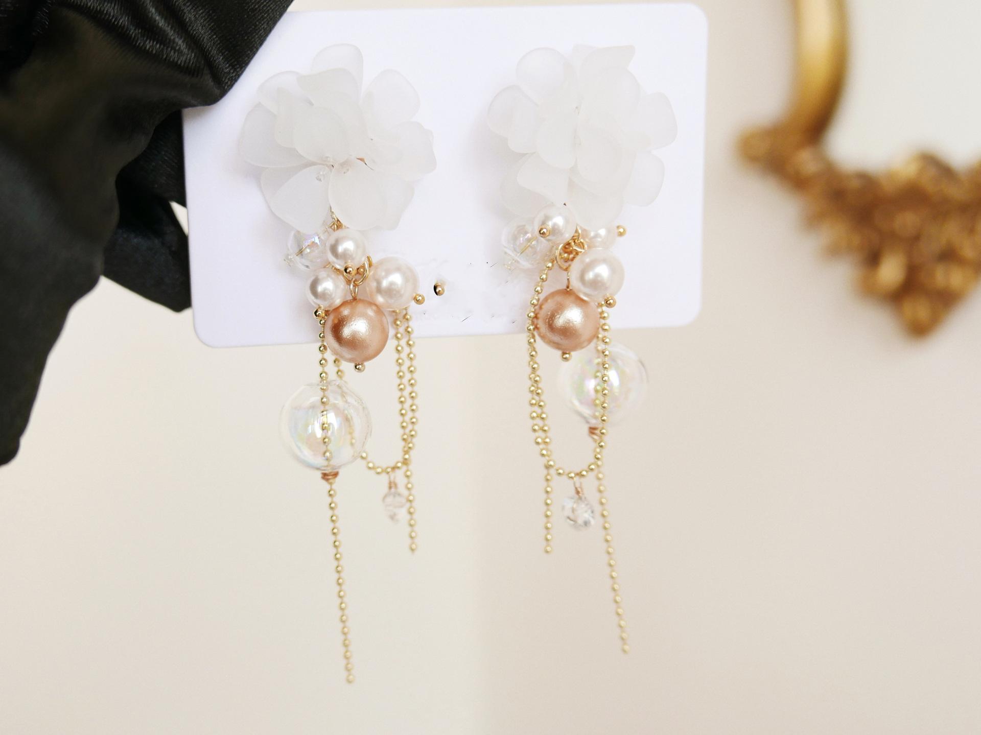 Aretes de Borla de Flor de Perla de Aguja de Plata Retro Lujo Ligero Versátil Aretes Nicho Temperamento Aretes de Gama Alta Venta al por Mayor para Mujeres