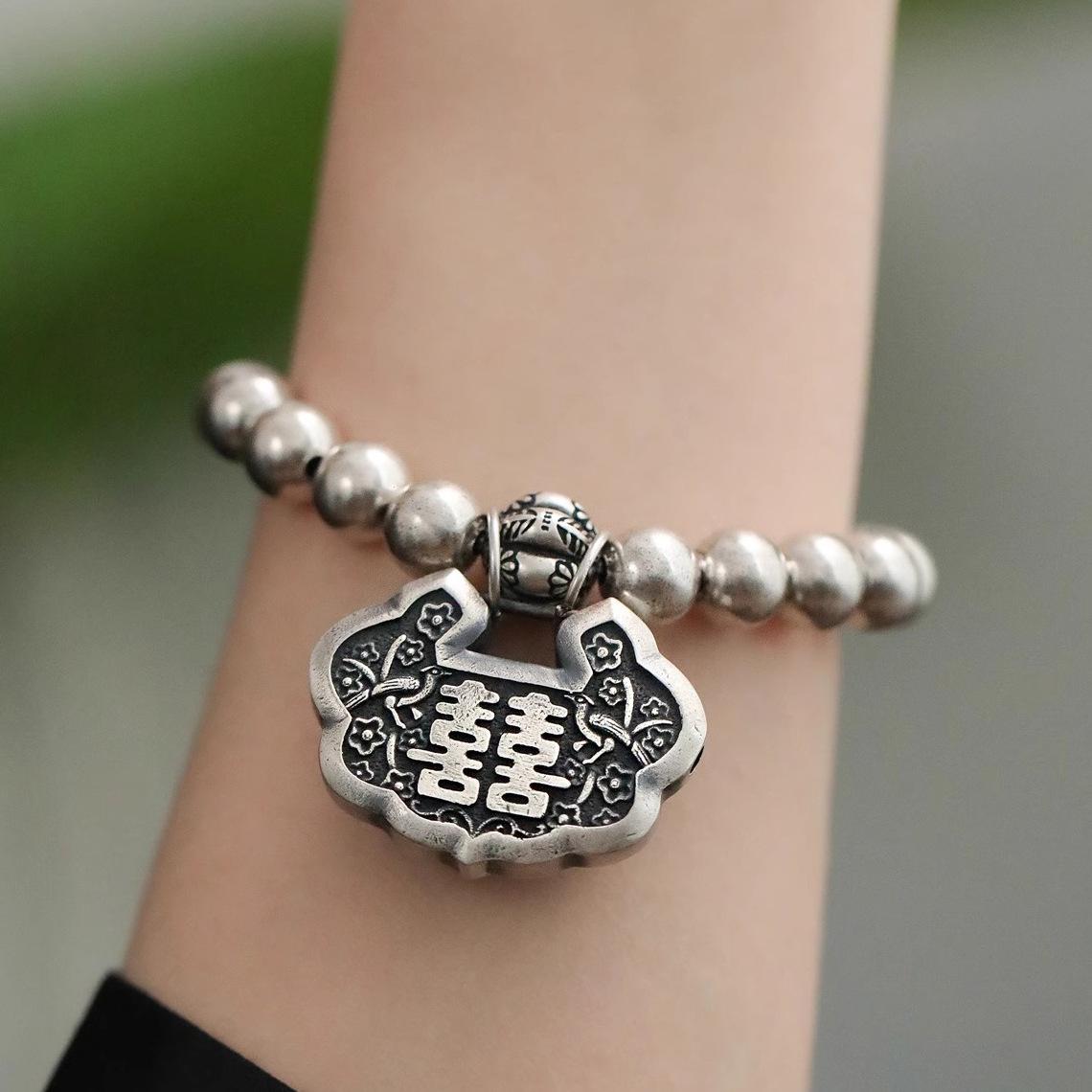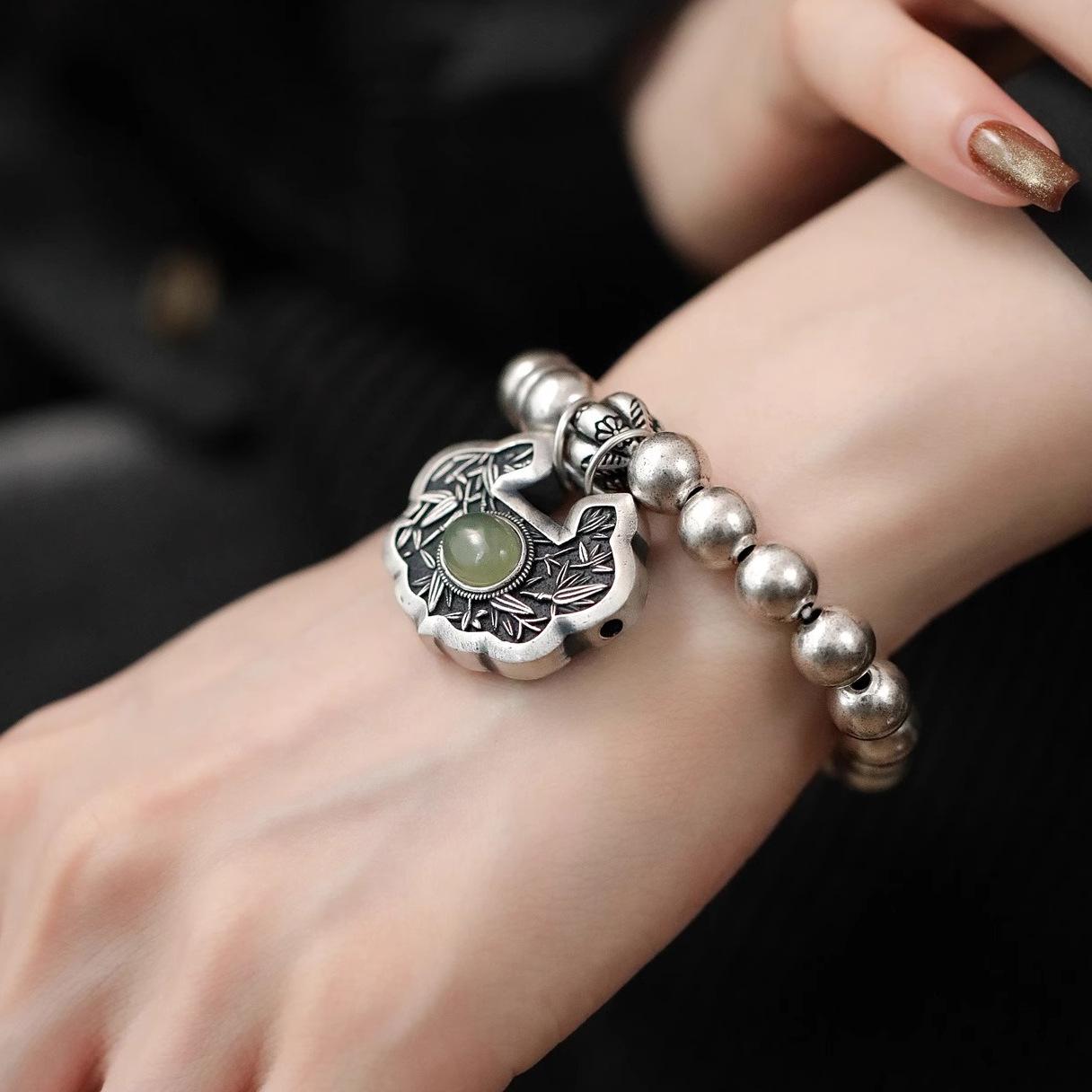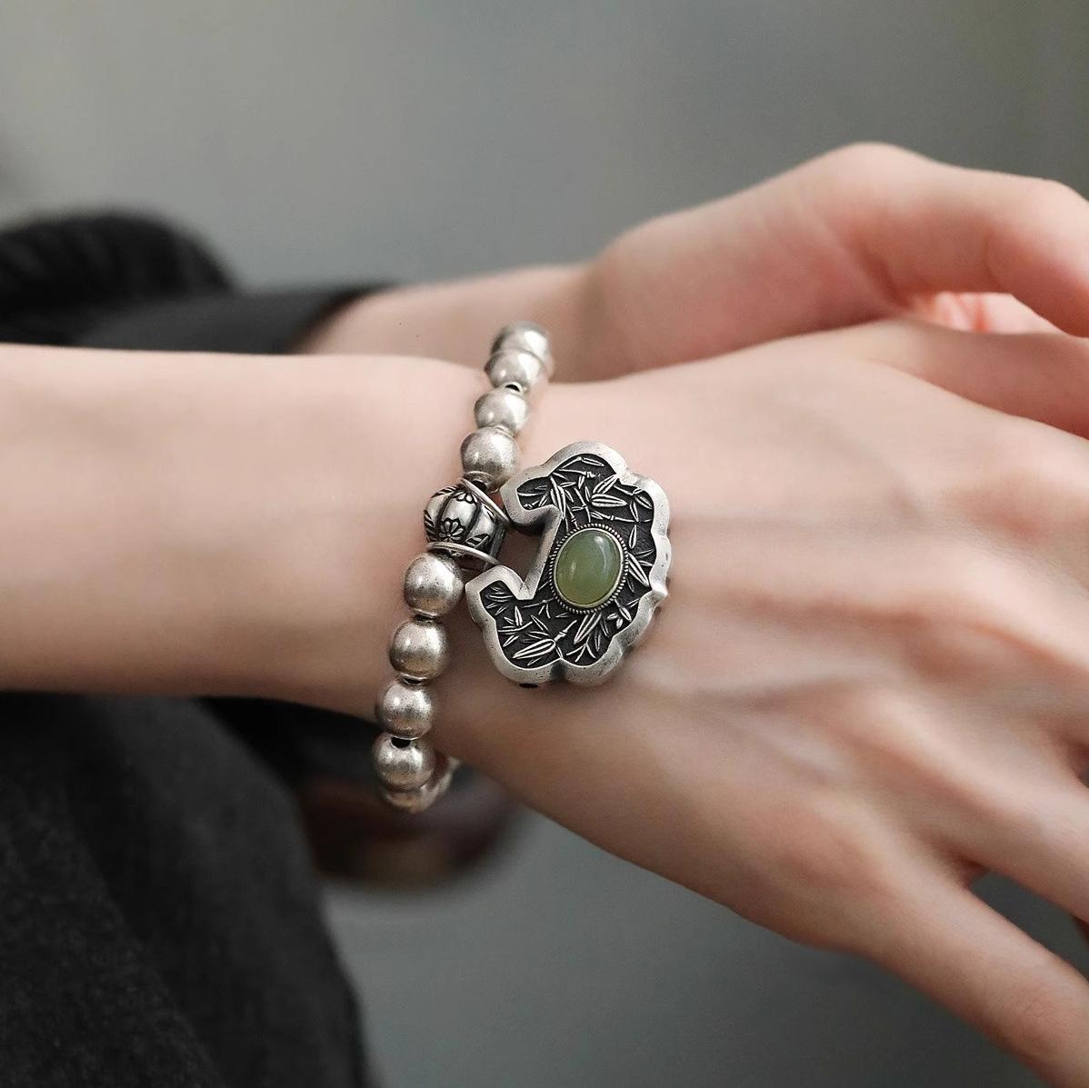 Pulsera Personalizada con Hebilla de la Paz Estilo Retro Vintage para Mujer Pulsera de Moda Estilo Chino Antiguo Estilo Artístico Étnico para Mujer