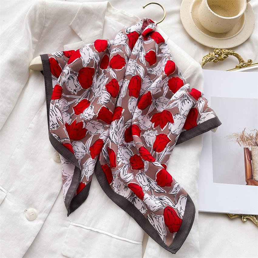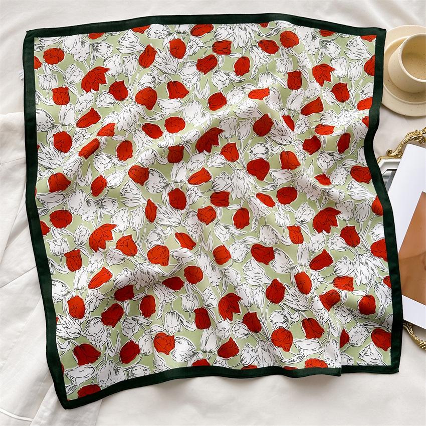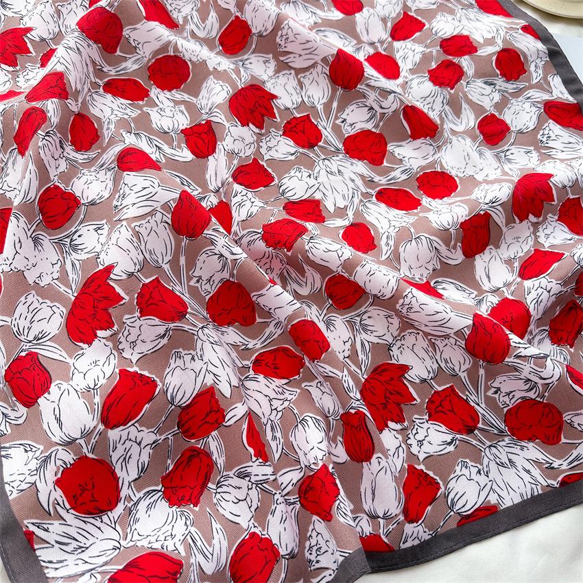 Pañuelo de Seda Fina Cuadrado Pequeño de Moda Rosa de Alta Calidad Francés Pañuelo Espiga Chal Pañuelo de Terciopelo Imitación