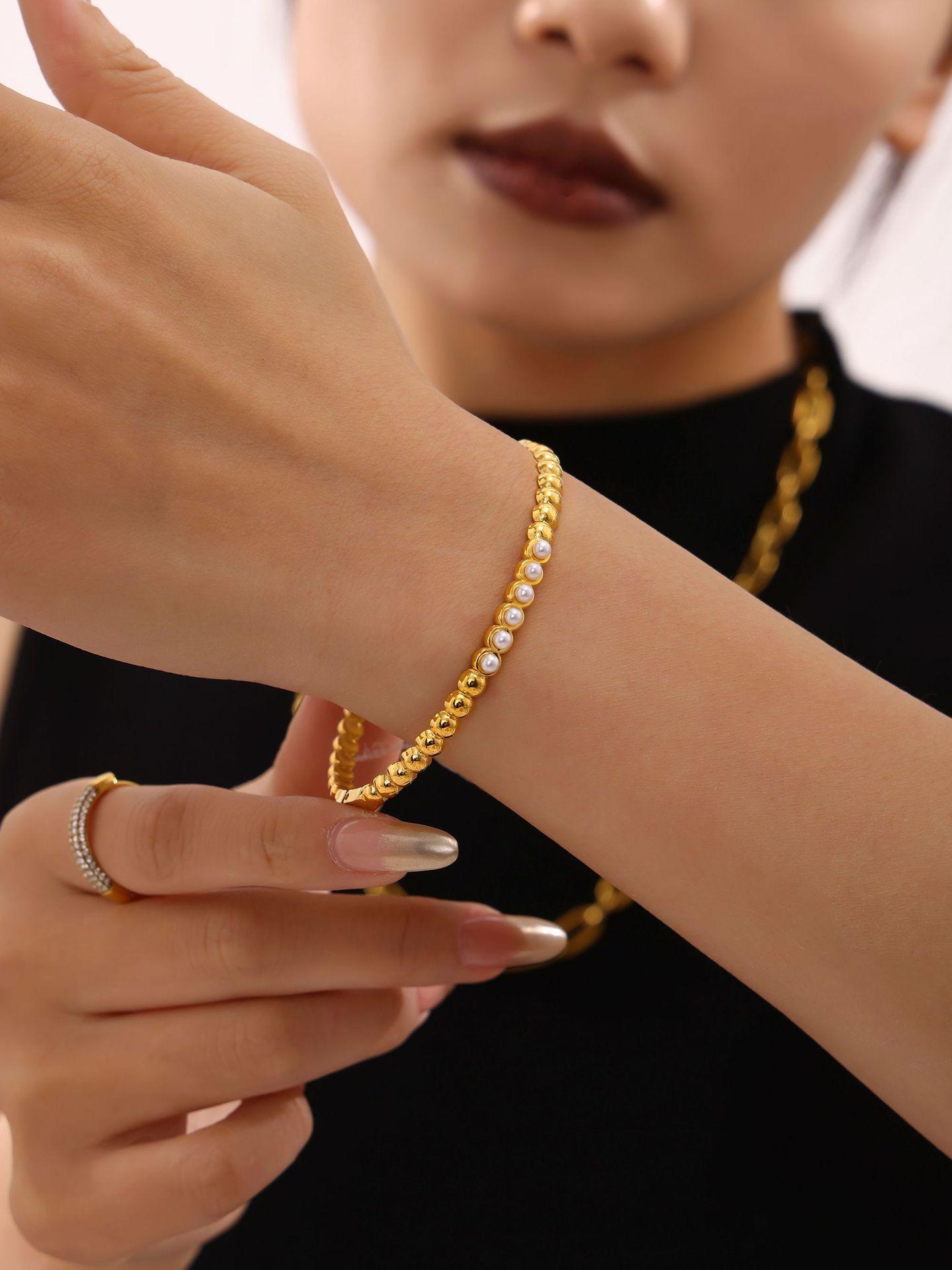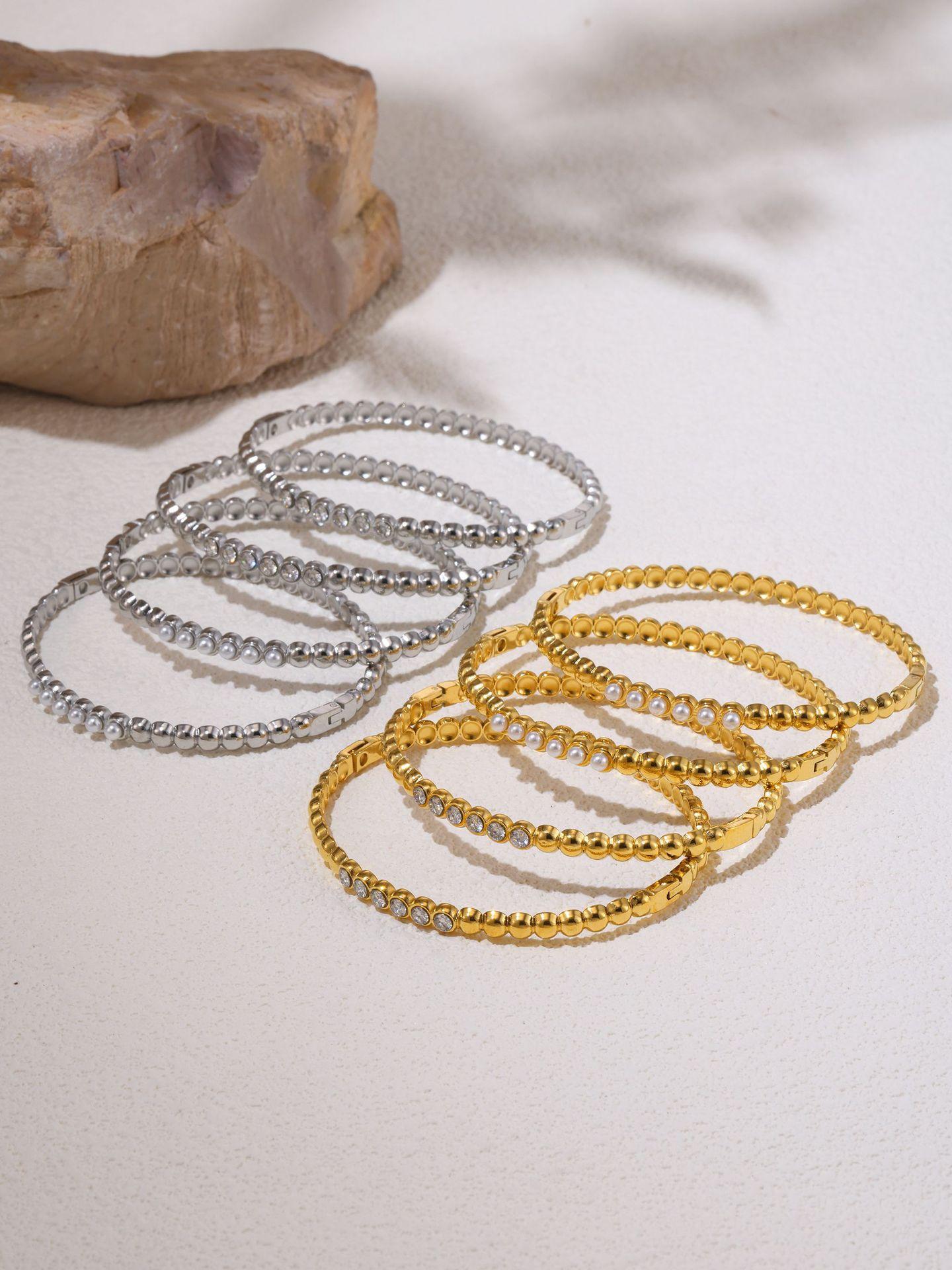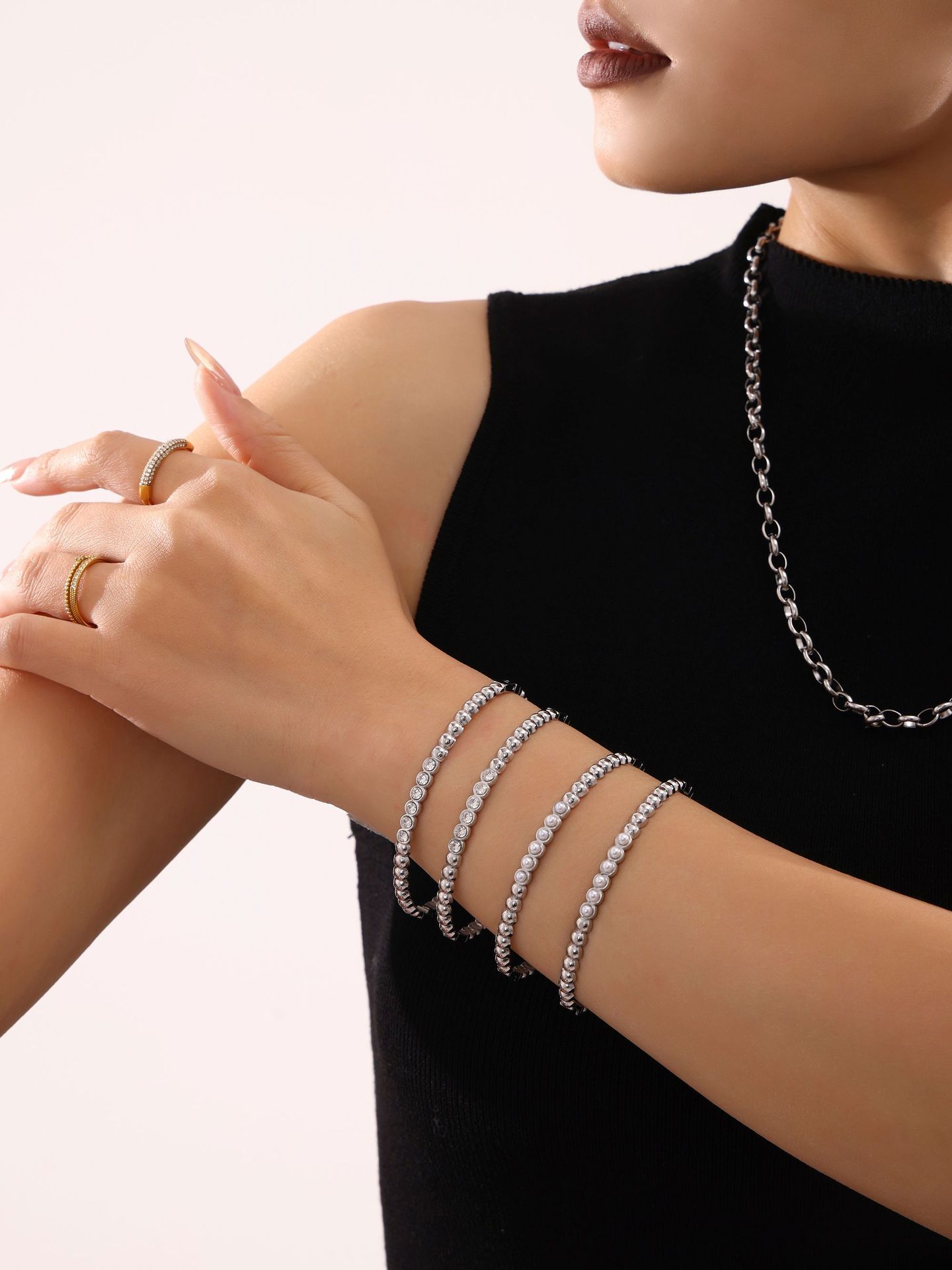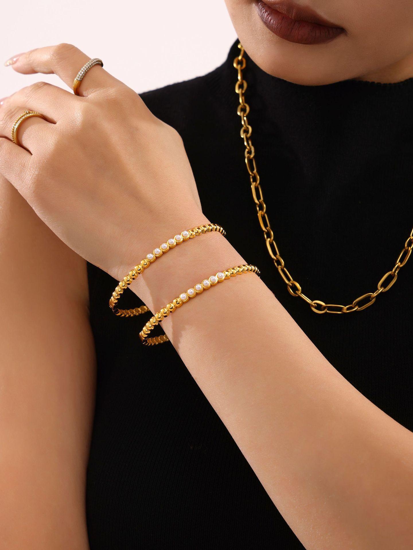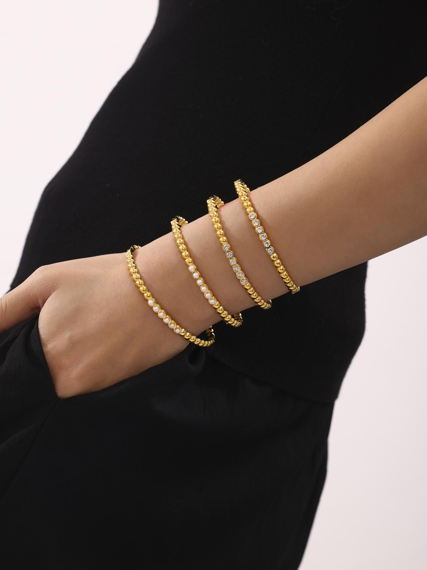 Z392-gold zircon bracelet, Z392-steel color zircon bracelet, Z392-gold pearl bracelet, Z392-steel color pearl bracelet