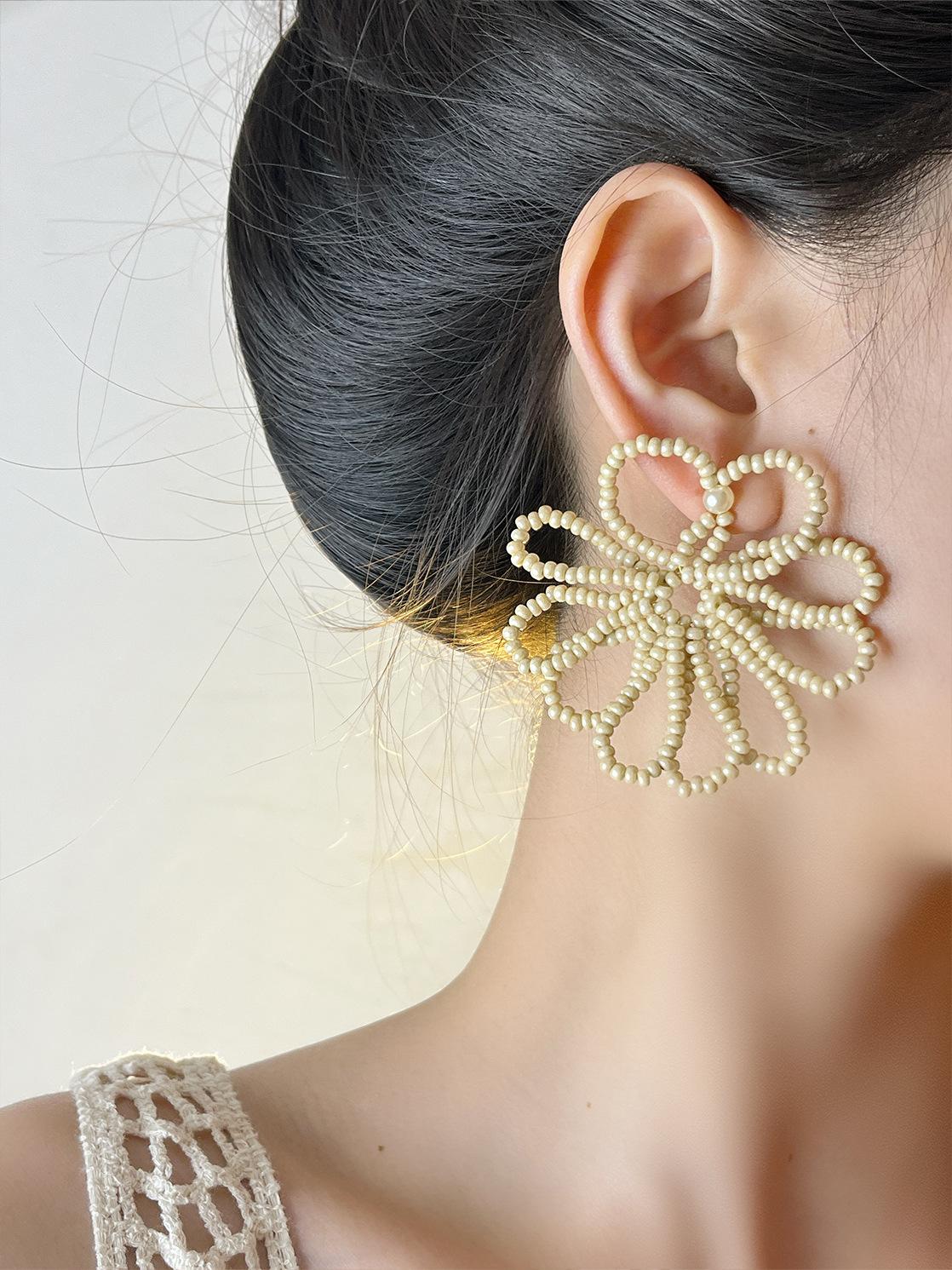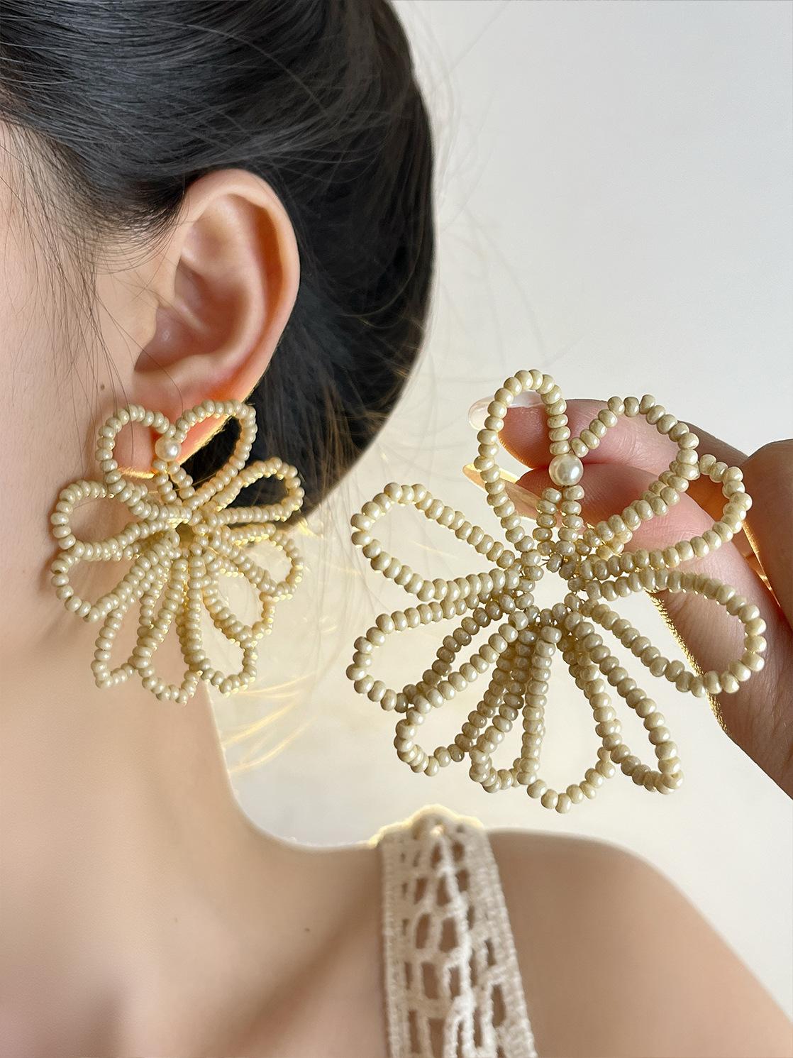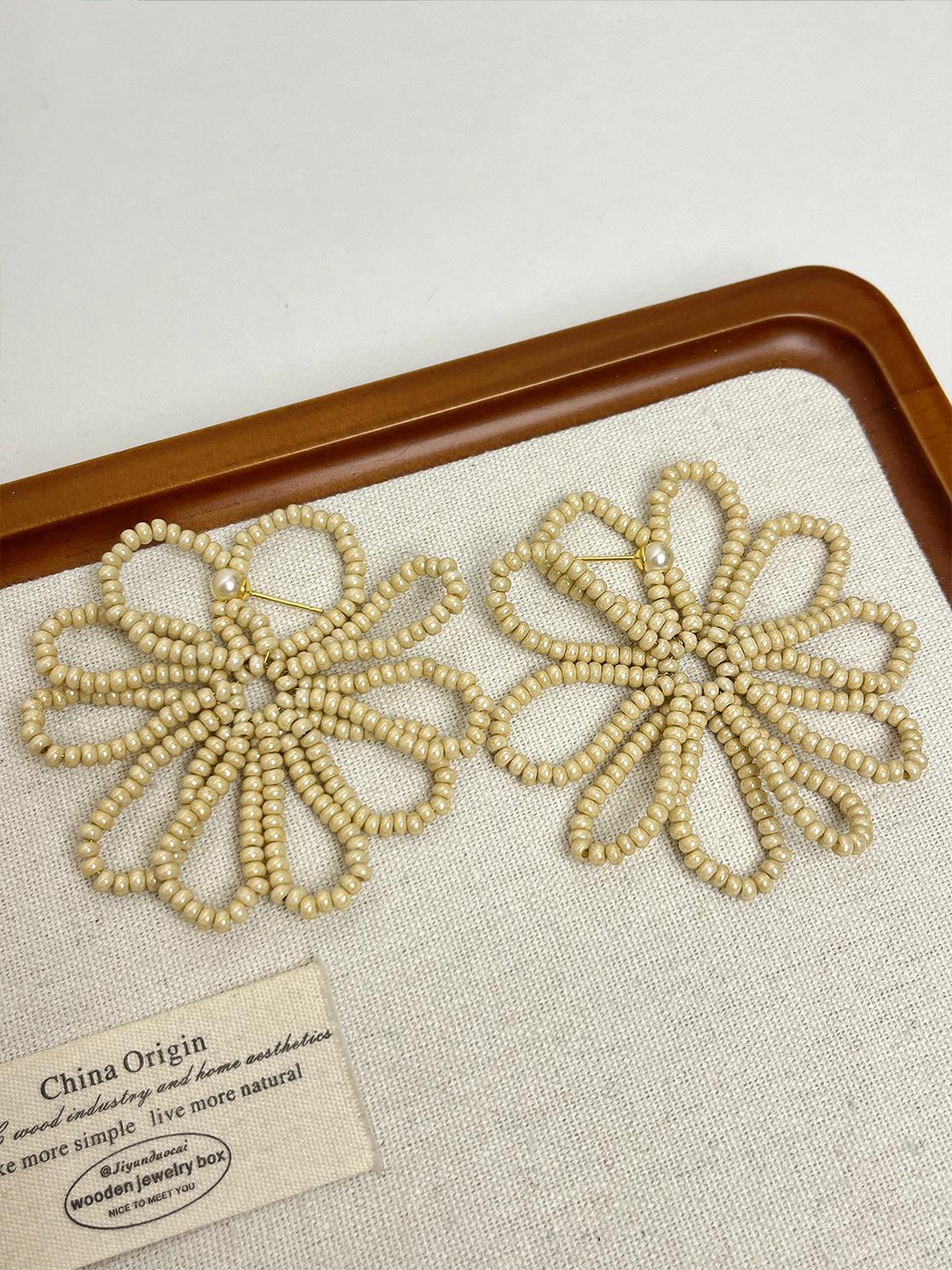 Personalidad Temperamento Aretes de Flor con Cuentas Estilo Vacacional Bohemio Aretes de Tuerca Sentido de Diseño Nicho Moda Retro Accesorios para la Oreja