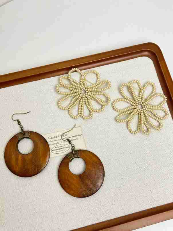 Wooden Earrings M-22 (S925 Silver Needles), Flower Earrings M-72 (S925 Silver Needle)