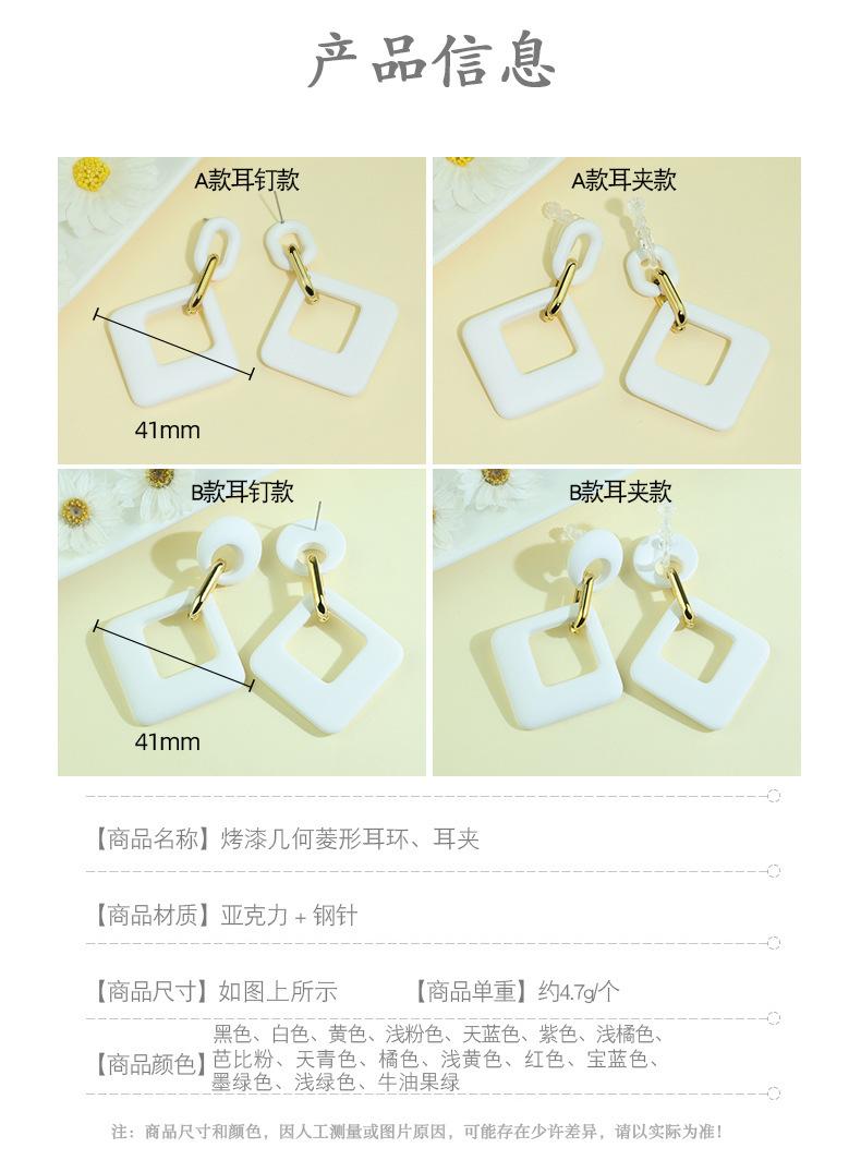 Type a lacquered geometric rhombus earrings, Type a lacquered geometric rhombus ear clips, Type b lacquered ge...