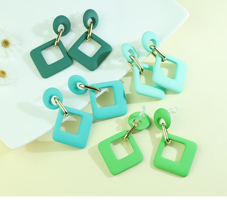 Nuevos aretes geométricos huecos de diamante con pintura en aerosol, aretes acrílicos, moda simple, aretes dopamínicos, aretes