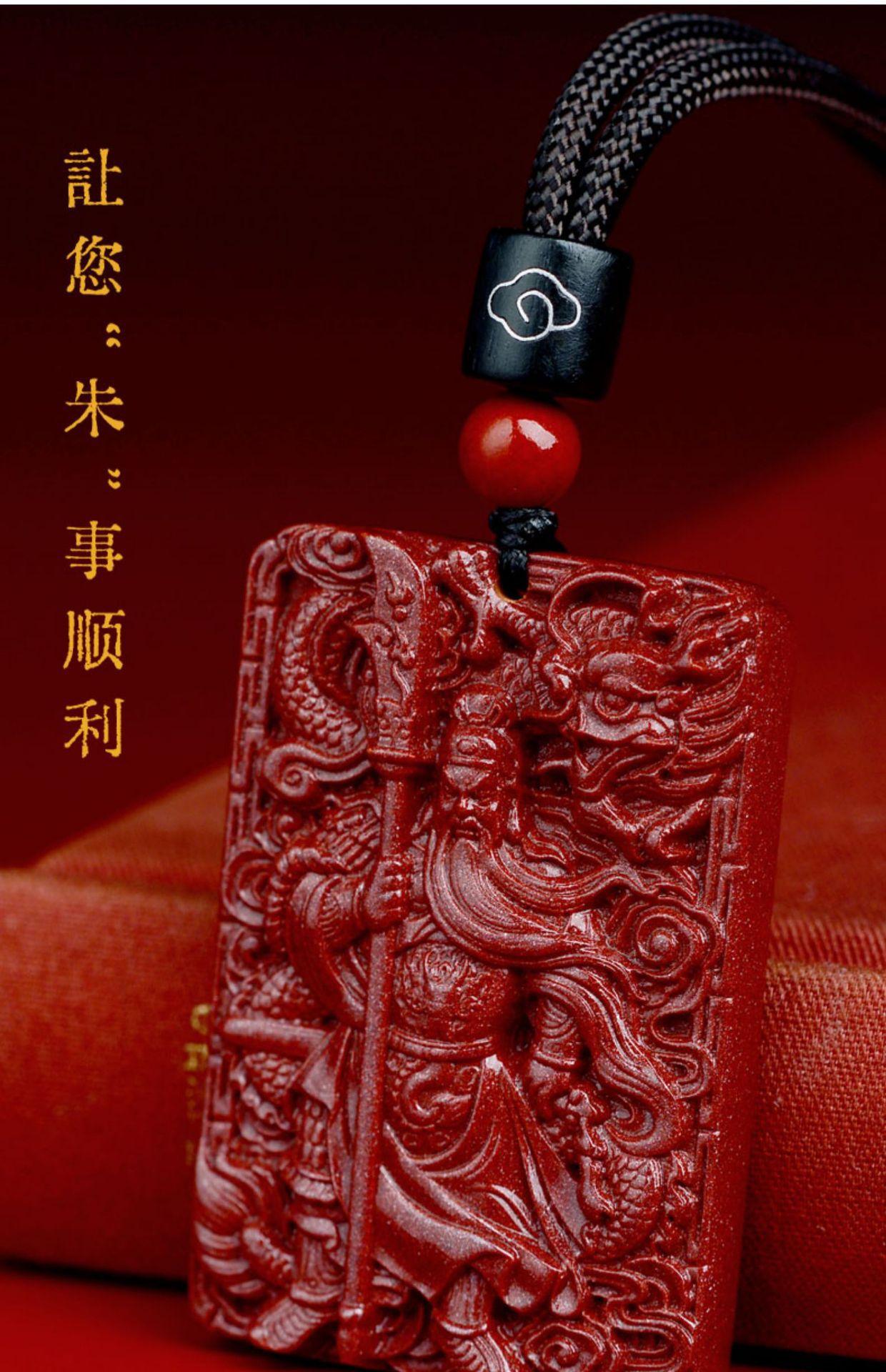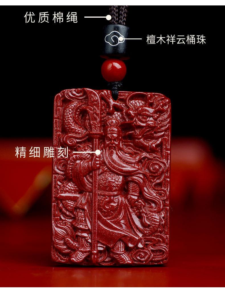 Colgante de Cinabrio Natural Guan Gong Collar para Hombre Auténtico Imponente Guan Er Ye Guan Yu Dios Marcial de la Riqueza Colgante Amuleto para Mujer