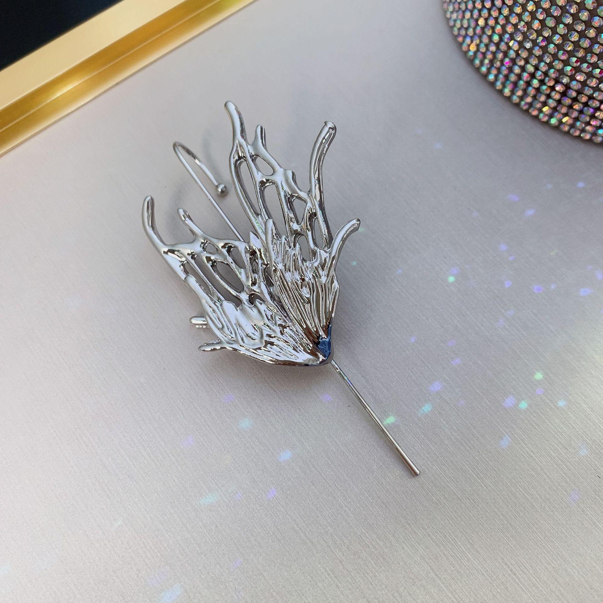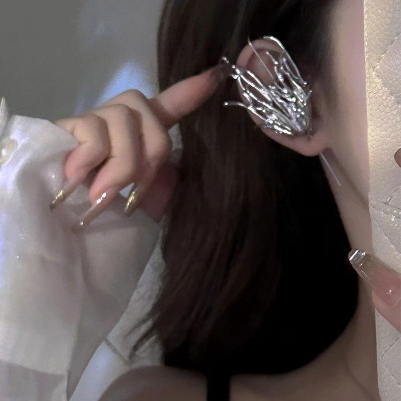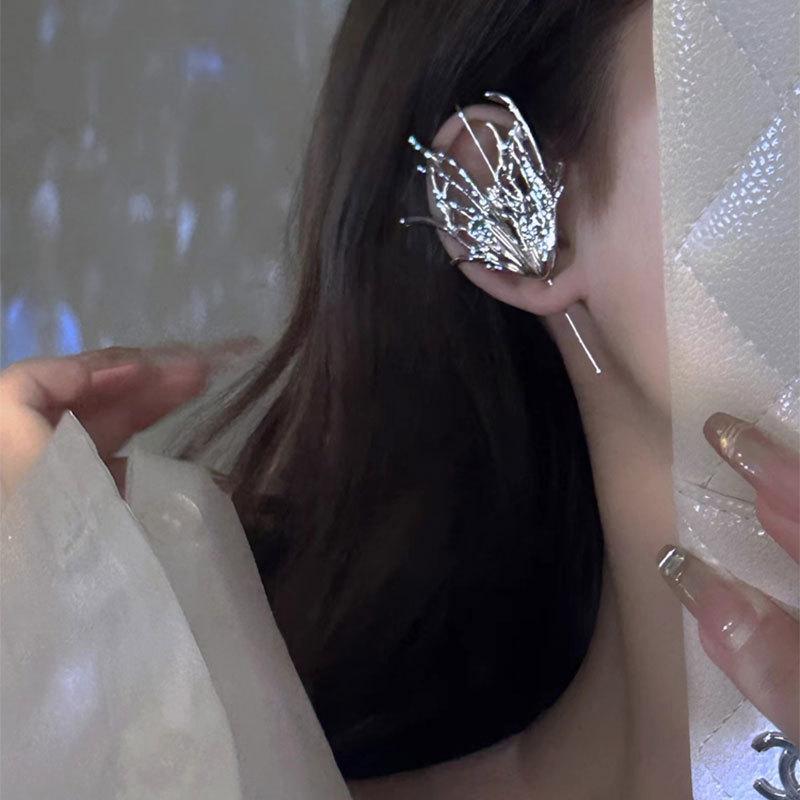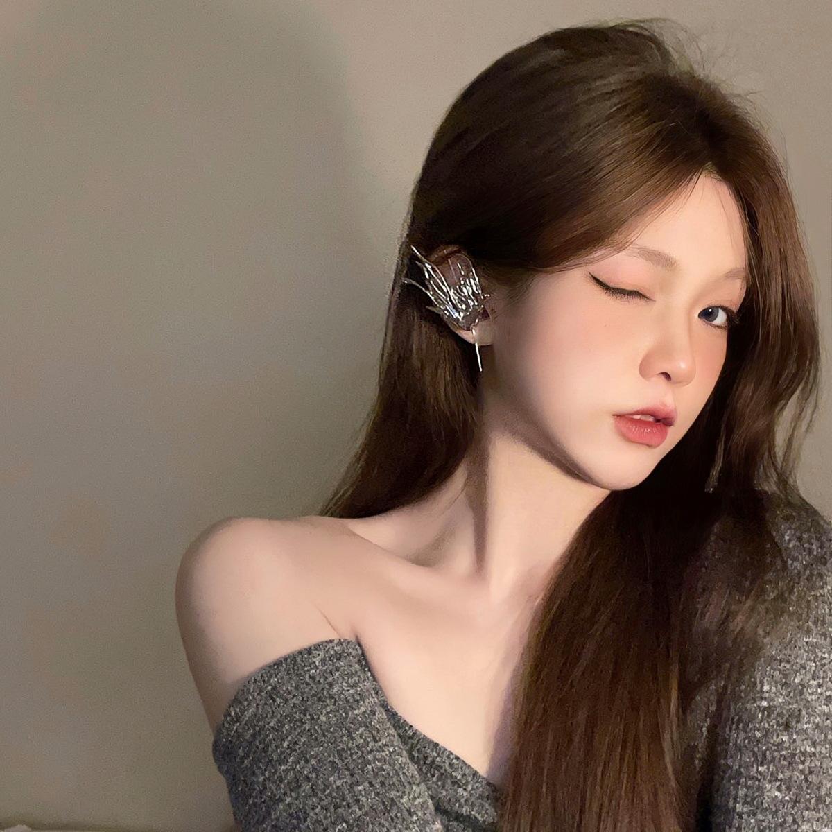 Clip para Oreja de Mariposa de Metal Líquido Arete de Una Pieza Diseño Nicho Lujo Ligero Ins Viento Frío Aretes Perforados