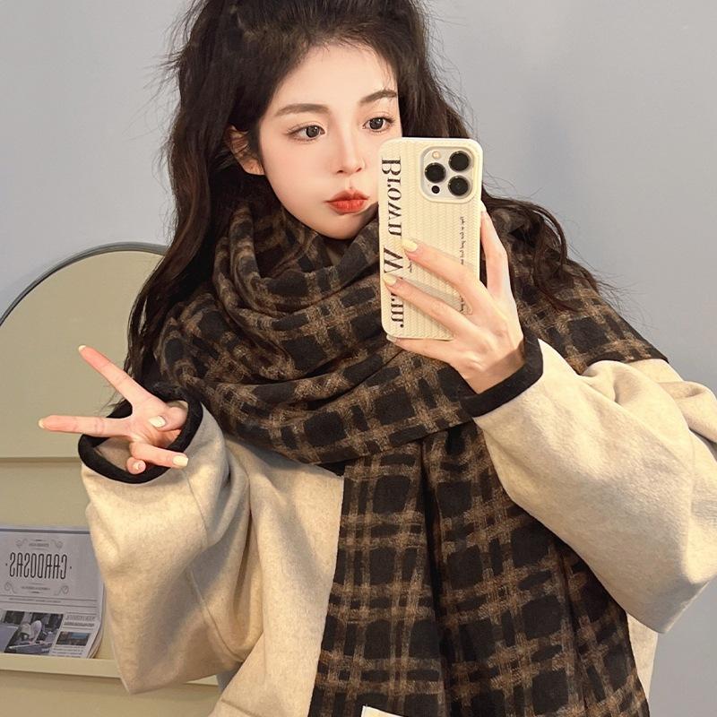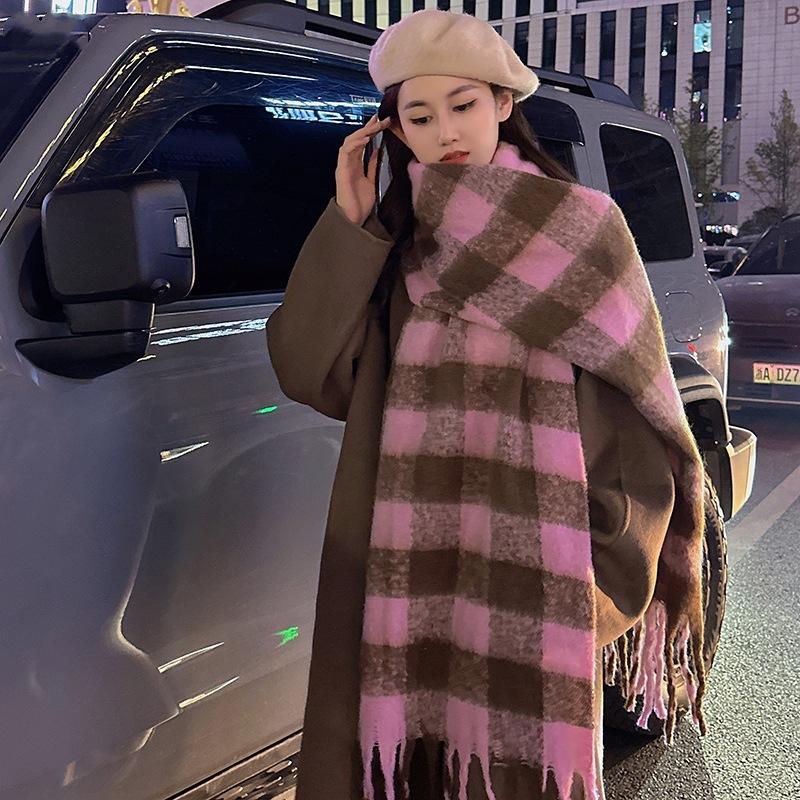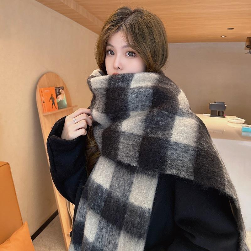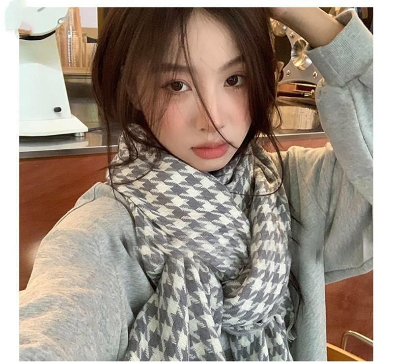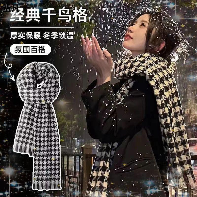 2025 Bufanda Nueva para Mujer Invierno Versión Coreana Más Fácil de Combinar Estudiante Tejida Pata de Gallo Chal Bufanda Gruesa para Mujer Venta al por Mayor